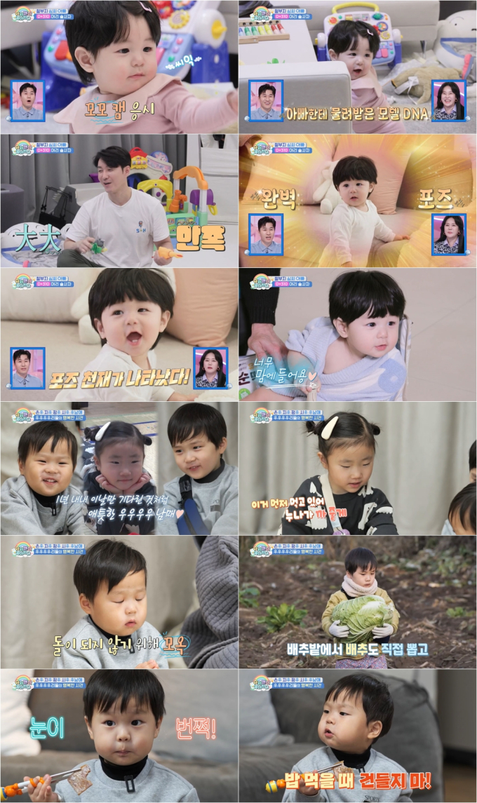 ‘슈돌’우형제X우남매(사진=KBS)KBS2‘슈퍼맨이돌아왔다’의김준호의아이들‘우형제’은우-정우와장동민의아이들‘우남매’지우-시우가다양한경험을함께하면서친남매같은끈끈한모습을보였다.참고견디고나눠야하는일들앞에서아이들은걱정하고챙기면서서로가서로의성장을도와아빠들을뿌듯하게했다.지난17일(수)방송된‘슈퍼맨이돌아왔다’(이하‘슈돌’)601회는‘넌감동이었어’편으로MC김종민,랄랄이함께했다.이와함께‘슈돌’은전국3.1%시청률을기록하며,시청률순항을이어가고있다.(닐슨코리아기준)이날방송에서는김준호의아들은우와정우,장동민의딸지우와아들시우까지‘우4남매’가‘동민스테이’체험과김장을담그며인내하고협동하는법을배웠다.장동민은‘동민스님’으로변신해깜짝동민스테이를열고아이들에게가장어려운기다림,인내심을가르쳤다.동민스님은‘우4남매’에게눈을감게한뒤싱잉볼소리가멈출때까지뜨지말라고했다.“눈을뜨면돌이될것이다”라는동민스님의말에아이들은뜨고싶은눈을파르르떨면서참고참았다.지난크리스마스때과자로만든산타할아버지집을참지못하고먹었던정우는,이번에는‘뜰랑말랑’‘파르르’고비에도끝까지눈을뜨지않았다.아이들은30초동안눈을감고기다렸다.그과정에서서로를생각하는더욱깊어진마음도확인했다.은우는싱잉볼소리가멈추고눈을뜨자마자정우를확인한뒤눈물을흘렸다.혹시정우가중간에눈을떠서돌처럼굳었을까봐걱정했던것이다.정우가태어난순간부터동생을챙겼던은우의남다른동생사랑에아빠김준호는뭉클해했다.김준호와장동민은함께김장김치를만들면서아이들에게협동심도가르쳤다.아빠가배추를뽑으면아이들이힘을모아수레에싣었다.아빠DNA는어디가지않았다.‘국대아들’은우는3.5kg배추를거뜬히들었다.힘하면빠질수없는장동민의딸지우도배추를드는괴력을발휘했다.지우는은우의배추를들어주는등밭일하면서아이들은협동심도쑥쑥자랐다.아이들은배추에소금을뿌려도보고,양념도만들고버무려도보면서함께김치를완성했다.인내하고협동한보상은달콤했다.아이들은직접담근김치를고기와함께‘전투적먹방’을즐겼다.지우는최애음식인뚝배기를들고국물을흡입하며연신맛있다를외쳤다.‘우형제’는편육의매력에빠졌다.소꼬리찜,족발이어편육까지정복한정우는“삼촌고기좀더주세요.제발요”간절하게호소하면서결국혼자서18개를흡입했다.‘우4남매’는이렇게만든김치를하루네가족,엘라네가족,김종민과랄랄에게선물하며나눔의뿌듯함도알게됐다.그런가하면,심형탁의아들하루는광고모델로변신했다.하루는처음혼자서광고를촬영하면서도사람들이많은낯선환경에서도잘참고기다리고이겨냈다.촬영하는내내웃음을잃지않고트레이드마크인코찡긋눈웃음을물론,인어왕자도울고갈포즈,귀여운뒤태를뽐내며엉덩이를실룩실룩움직이기도했다.관계자들은“너무잘한다”며하루를대견해했다.9개월첫광고때는아빠의노력으로웃었던하루는인생10개월차에스스로잘웃으면서또한뼘더자랐다.그런결과물뒤에는아빠가있었다.원조모델인아빠는그런아들을위해일일매니저를자처했다.스태프들을위한도시락을준비하고하루의의상과외모를체크했다.직접모델포즈를가르치고하루가촬영현장에서편안함을느낄수있도록부지런히움직이는등아빠는또그렇게아이를키웠다.방송후사회관계망서비스(SNS)에서는“똑똑하고잘생기고순둥순둥완벽한천상계하루“,“심하루빵긋빵긋예뻐죽겠어”,“하루는아빠모델유전자고대로물려받았네”,“은우정우의우애가참깊다.기특하다”,“우4남매케미터진다”,“애들끼리면먹는걸로대화가통하는게왤케웃기지”,“김편육씨말투넘웃겨서빵터짐”,“지우은우정우다말은너무예쁘게한다”등애정가득한반응이이어졌다.한편,‘슈돌’은2013년처음방송된이래13년동안국민의사랑을받고있다.2023년은우에이어지난6월2주차,3주차TV-OTT비드라마부문출연자화제성부문에서‘슈돌’정우가2주연속10위권안에오르며최연소최강화제성의형제임을입증했다.지난8월2주차동일부문에서‘슈돌’하루와심형탁이동시에10위권에진입해시청자의뜨거운관심을증명했다.(굿데이터코퍼레이션기준)또한지난7월제14회‘인구의날’기념‘대통령표창’을받아‘국민육아예능’의위엄을보여준바있다.KBS2TV‘슈퍼맨이돌아왔다’는매주수요일오후8시30분에방송된다.박지혜기자[email protected]뉴스연예팀기사제보[email protected]©bnt뉴스.무단전재,재배포및AI데이터활용금지