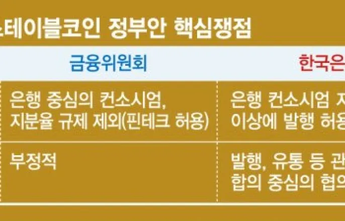 (1)원화스테이블코인정부안은지분율·만장일치합의기구등금융위-한은핵심쟁점이견디지털자산포괄규율체계제시내년1월정부·의원안병합심사지난1일국회의원회관에서스테이블코인당정협의회가열리고있다.뉴시스은행지분51%이상컨소?…스테이블코인발행주체원화스테이블코인관련,정부안발의가임박한가운데금융위원회와한국은행은은행등발행주체와협의체등두가지막판쟁점을조율하고있다.금융위는스테이블코인발행주체는은행이중심으로참여하되,지분율강제는국제적정합성에맞지않다고보고있다.반면한국은행은은행지분이51%를넘는컨소시엄에발행을허가해야한다는입장이다.한은이발행인가단계에서만장일치합의기구를요구한데대해서는금융위가부정적이다.이들쟁점에서절충안을찾으면원화스테이블코인정부안이발의될것으로보인다.더불어민주당정무위원들은내년1월의원입법발의와정부안을병합심사할계획이어서내년에는한국형스테이블코인시장이열릴전망이다.■은행중심vs핀테크허용10일금융당국및정치권에따르면금융당국은민주당정무위원들이설정한스테이블코인정부안제출데드라인인이날까지정부안을제출하지못했다.정무위여당간사인강준현의원은"정부안은한은과정책실과논의하는단계로더늦어질것"이라며"11일태스크포스(TF)간담회에서쟁점사항을의원들과논의하면서이해당사자간의견조율을하고설득도해보려한다"고전했다.쟁점사항은원화스테이블코인발행주체와협의체구성방식이다.한은은은행지분이51%를넘는컨소시엄에발행을우선적으로허용해야한다는입장이다.이후발행주체를단계적으로확대하자는것이다.이와달리금융위는은행중심으로발행주체를허용하더라도지분율을법에명시하는것은국제적정합성에어긋난다는입장인것으로알려졌다.국제적정합성은이억원금융위원장이지난달기자간담회에서밝힌한국형스테이블코인정부안방향성의첫번째항목이다.실제유럽연합(EU)의미카법에따라스테이블코인을발행한15곳가운데14곳이전자화폐기관이고,일본에서첫엔화스테이블코인을발행한주체는핀테크스타트업이다.금융권의한관계자는"원화스테이블코인사업자에만지분율규제를적용하면국내에진출한해외스테이블코인사업자와규제형평성문제가발생한다"면서"지분율도기술적으로법안조문에명시할수없어인·허가지침에반영하는방안을고민중인것으로알고있다"고말했다.한은이요구한원화스테이블코인발행인가단계에서만장일치합의기구가필요한지를두고도의견이갈린다.현재국회에발의된의원입법은인가권을금융위원회에부여하고있다.한은은만장일치합의기구를설치하자는것이다.원화스테이블코인발행과유통과정에서의정책적현안을관계당국과다룰협의체가필요한데,이를합의기반으로하자는의미다.금융위는전례에없는합의기구설치에부정적입장으로전해졌다.■디지털자산포괄규율체계정비한국형스테이블코인정부안에는스테이블코인발행주체인인가제도입외에도△예금,국채등준비자산운용규제△이용자상환권보장△해외스테이블코인규제체계등스테이블코인의발행과유통에대한기초적인제도설계가이뤄진다.스테이블코인의특성상발행자를경유하지않은채중개자를통해거래될수있고,달러스테이블코인이전세계시가총액의90%이상을차지하고있어외국환거래법과관련해서도규율체계정비가필요하다.금융위는해외스테이블코인규율체계에있어유럽의미카방안을검토하고있다.또스테이블코인의자금세탁방지(AML),금융소비자보호,불공정거래금지등감독·집행체계구축도중요한제도정비사안으로꼽힌다.전체디지털자산시장을포괄하는통합적규율체계도제시된다.한국형스테이블코인정부안발의시점이지연되면서본격적인법안논의는해를넘길전망이다.이에오는15일예정된국회정무위원회법안1소위원회에서스테이블코인관련법안논의는제외됐다[email protected]박소현기자Copyright©파이낸셜뉴스.무단전재및재배포금지.