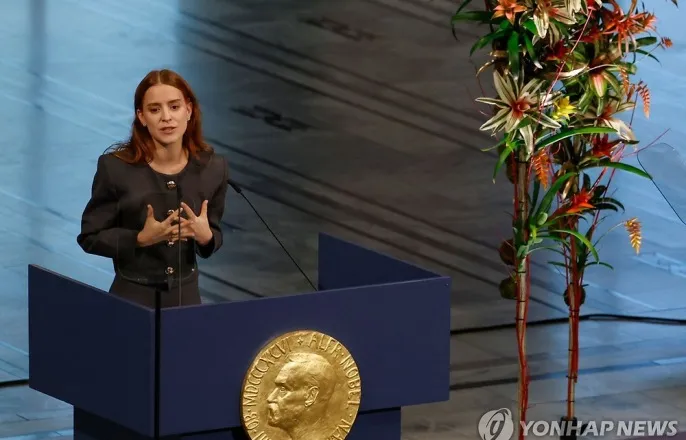 노벨측"늦어도11일도착"…마차도"오슬로행에많은이가목숨걸어""모든베네수인들에게주는상…자유위해기꺼이싸울것"노벨위원장,마두로에"사퇴하라"…밀레이등친미중남미정상총출동노벨평화상을대신받은마리아코리나마차도의딸[AFP연합뉴스재판매및DB금지](브뤼셀=연합뉴스)현윤경특파원=올해노벨평화상수상자인베네수엘라야권지도자마리아코리나마차도(58)가10일오후노르웨이오슬로에서열린시상식에끝내모습을드러내지못했다.하지만현재그가노르웨이로향하는중으로알려져뒤늦게나마노르웨이행은성사될것으로보인다.마차도가시상식에제때도착하지못하면서이날오슬로시청에서열린노벨평화상은그의딸인아나코리나소사마차도가대신받았다.마차도는이날시상식직전에공개된노르웨이노벨위원회측과통화에서시간내에도착하지못해"정말정말미안하다"면서현재오슬로로향하고있으며"내가오슬로에갈수있도록목숨을건너무나많은사람이있다"고밝혔다.노벨평화상을대신받은마리아코리나마차도의딸[AFP연합뉴스재판매및DB금지]요르겐바트네프뤼드네스노르웨이노벨위원회위원장은시상식에서"마차도는오늘이시상식에참석하려고할수있는모든것을했다.이는극히위험한상황에서의여정"이라고말했다.이어"비록시상식에닿지는못했지만그가안전하며이곳오슬로에(곧)우리와함께있을것이라는사실을확인하게돼무척기쁘다"고덧붙였다.노벨위원회측은시상식직전에는마차도의신변이안전하며그가늦어도11일안으로는오슬로에도착할것이라고공지했다.마차도의딸아나는시상식에서"엄마는자유로운베네수엘라에서살길원한다.아주조만간그녀는베네수엘라에돌아갈것"이라고말해마차도의노르웨이체류기간이길지않을것임을시사했다.딸이대독한노벨상수상연설문에서마차도는"자유를위해기꺼이싸워야한다"며"우리베네수엘라인들이세계에줄수있는것은이길고,어려운여정을통해얻게된교훈"이라고강조했다.마차도는이와별도로노벨위원회가웹사이트에공개한음성메시지에서"이상은모든베네수엘라인을위한상"이라며"(오슬로에)도착하자마자2년동안못본내아이들과모든가족,우리의투쟁과싸움을공유한정말많은베네수엘라인,노르웨이인을안아줄수있을것"이라고기대했다.마차도의시상식참석불발은전날노벨상수상자기자회견이취소되면서어느정도예견됐다.베네수엘라야권지도자마리아코리나마차도[AFP연합뉴스자료사진재판매및DB금지]마차도는니콜라스마두로베네수엘라대통령의철권통치에맞서작년8월이후베네수엘라모처에은신중으로,대중앞에등장한것은올해1월9일반정부시위가마지막이었다.이런까닭에그가체포위협을무릅쓰고오슬로시상식에직접참석할지가올해노벨상과관련한가장큰관심사중의하나였다.베네수엘라당국은마차도가범죄모의,테러리즘등다수의범죄혐의를받고있다며그가출국하는경우탈주범으로간주할것이라고경고한바있다.마두로정권은2014년에마차도에대해출국금지령을내렸다.프뤼드네스위원장은이날시상식에서마두로대통령에게작년대선패배를인정하고사퇴하라고요구하며"민주주의로의평화로운이양을위한토대를놓아달라.그것이베네수엘라민중의의지"라고말해참석자들의박수를받았다고AFP통신은전했다.도널드트럼프미국행정부가최근베네수엘라정권을'마약카르텔'로규정하고카리브해에대규모군대를배치하면서마두로정권은최대위기에봉착했다.이날시상식에는하비에르밀레이아르헨티나대통령,다니엘노보아에콰도르대통령,호세라울물리노파나마대통령,산티아고페냐파라과이대통령등친미성향의중남미정상이대거참석,마차도의수상을축하하고연대를표명했다.노르웨이노벨위원회는지난10월"베네수엘라국민의민주주의권리를촉진하기위해지치지않고노력했으며독재에서민주주의로정의롭고평화로운전환을이루기위해사투를벌였다"며마차도를올해노벨평화상수상자로선정했다.역대노벨평화상수상자중에는반체제인사가많았기에수상자가시상식에불참한사례는이번이처음은아니라고AP는짚었다.2023년과2022년수상자인이란반체제활동가나르게스모하마디,벨라루스의인권활동가알레스비알리아츠키는투옥중이라오슬로에가지못했다.중국의인권운동가류샤오보,아웅산수치미얀마국가고문도각각2010년,1991년시상식에불참했다[email protected]▶제보는카톡okjeboCopyright©연합뉴스.무단전재-재배포,AI학습및활용금지