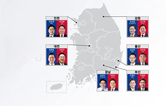 '미니대선'서울,정원오vs오세훈맞대결유력최다유권자경기,추미애대'국힘4파전'민주,보수심장대구에김부겸올려'승부수'[앵커]6·3지방선거가50일앞으로다가왔습니다.전국16개광역단체의대진표가윤곽을드러내는가운데,곳곳에서국민의힘현역광역단체장대민주당중진들의대결구도가형성되는모습입니다.함께치러지는재보궐선거에는이른바잠룡들의출마가가시화하고있습니다.강민경기자가정리했습니다.[기자]현재까지광역단체장대진표가확정된지역은6곳,부산과인천,강원과울산,대전과경남입니다.국민의힘소속현역단체장에민주당중량급인사들이도전장을내민구도입니다.[정청래/더불어민주당대표(지난13일):전국을파란바람으로물들여파란을일으켜6월3일지방선거를승리하겠습니다.][장동혁/국민의힘대표(지난6일):4년의압도적성과를토대로더큰미래를열어갈길목에서있습니다.]양당의공천속도가달라16개광역단체가운데절반이채차진않았지만,대략적인흐름을예측해볼수는있습니다.'미니대선'으로꼽히는서울의경우,민주당후보직을따낸성동구청장출신정원오후보와오세훈현역시장의맞대결이성사될가능성이커보입니다.[정원오/더불어민주당서울시장후보(지난10일):시민이필요로하는일을먼저챙기는책임있는서울을선택하는선거입니다.][오세훈/국민의힘서울시장경선후보(지난10일):거대도시서울을민원해결형리더십에맡기기어렵다는게제판단이고요.]최다유권자지역인경기도에선민주당추미애후보를상대로,국민의힘은4파전집안싸움을준비하고있습니다.민주당은영남지역후보도일찌감치링에올렸는데,삼고초려끝에'보수의심장'대구에김부겸전국무총리를등판시키는데성공했습니다.[김부겸/전국무총리(지난달30일):저김부겸이가예뻐서해달라는거아닙니다.이번에는필요하잖아요!써먹을수있잖아요!]반면중원인대전과세종,충남에선국민의힘이먼저후보를확정지었고,지역통합을기다리던민주당이한발늦게경선레이스불씨를댕긴상태입니다.각당의공천과정이순탄치만은않았습니다.민주당은'당의뿌리'인호남권을채우지못했는데,전북은경선에서이원택의원에꺾인안호영의원이단식투쟁을불사하며파열음이커졌습니다.우세지역에서진땀을빼긴국민의힘도마찬가지,대구경선에서컷오프된주호영의원과이진숙전방통위원장이무소속출마를시사해지지층분열적신호가켜졌습니다.[주호영/국민의힘의원(지난8일):보수의가치를살리기위해서더낮은곳에서더치열하게싸우겠습니다.]지방선거와함께치러질,최대15곳의국회의원재보궐선거도관심입니다.상대적으로거물급인사들이여의도입성전투를준비하고있는데,특히부산북갑이주목받습니다.한동훈전국민의힘대표가사실상출마를공식화한가운데,민주당은하정우청와대AI미래기획수석영입에공을들이고있습니다.이재명대통령의지역구였던인천계양을에선'성남라인복심'으로꼽힌김남준전청와대대변인과본래맹주였던5선의송영길전대표가도전의사를밝혔습니다.경기안산갑에는3선의전해철전의원과'7인회'출신김남국대변인이함께출사표를던지며민주당내눈치싸움을이어가는추세입니다.이번선거에서민주당은국정안정론과내란심판프레임을앞세운압도적승리를노리고있습니다.국민의힘은견제론으로맞받아치며지지를호소하고있는데,선거일이다가올수록양당의전면전은더욱치열해질것으로보입니다.YTN강민경입니다.촬영기자:이성모,온승원영상편집:서영미디자인:김진호YTN강민경([email protected])※'당신의제보가뉴스가됩니다'[카카오톡]YTN검색해채널추가[전화]02-398-8585[메일][email protected][저작권자(c)YTN무단전재,재배포및AI데이터활용금지]Copyright©YTN.무단전재및재배포금지.