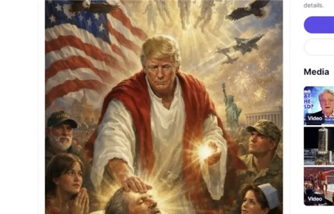 복음주의작가“약물에취한건지,즉시내리고용서구해야”“의사라고생각하고올려,나는더나은사람으로만든다”자찬NYT"트럼프,타인상처·불쾌감주는말과행동사과하지않아"[서울=뉴시스]도널드트럼프미국대통령이12일자신의SNS트루스소셜에올렸다하루도안돼내린인공지능(AI)합성예수사진.(출처:트루스소셜)2026.04.14.*재판매및DB금지[서울=뉴시스]구자룡기자=도널드트럼프미국대통령이자신의SNS트루스소셜에올렸던인공지능(AI)합성으로예수처럼자신을묘사한사진을하루도안돼내렸다.미정치매체폴리티코는13일트럼프대통령이12일올렸던자신을예수로묘사한사진이기독교계로부터‘신성모독적’이라는비난을받고가장충성스러운지지자들조차이를규탄하자하루만에내렸다고보도했다.트럼프는‘예수합성사진’을내린뒤백악관에서기자들에게“사진에담긴종교적이미지를제대로알아채지못했다”며“예수가아닌의사로묘사한것으로알고올렸다”고해명했다.트럼프는“나는사진속내가의사인것으로알았다”며“(예수라는주장은)가짜뉴스나만들어낼수있는짓”이라고말했다.그는“나는사람들을더나은사람으로만든다”고도했다.‘예수합성사진’에대해복음주의기독교작가인메건배샴은“트럼프대통령이농담이라고생각했던건지,아니면무슨약물에취한건지,아니면터무니없는신성모독에대해어떤변명을할수있을지모르겠지만그는즉시내리고미국국민과하나님께용서를구해야한다”고비판했다.트럼프가12일늦게올린이미지는흰색로브를입고예수그리스도와같은자세로병원침대에누워있는병자위에빛나는손을얹어마치그를치유하는듯한모습을묘사했다.배경에는성조기,자유의여신상,흰머리독수리등애국적인이미지가담겼다.이이미지는트럼프가바로앞서올린교황을비난하는334단어분량의글에이은것이라고폴리티코는전했다.트럼프는교황레오14세가이란과의전쟁을비난한것을두고“범죄에대해약하고외교정책에있어서는끔찍한인물”이라고맹렬히비판했다.트럼프의‘예수상’은마가(MAGA·미국을다시위대하게)운동에밀접하게연관된보수인사들로부터도반발이컸다.트럼프의지지자이자보수논평가인브릴린홀리핸드는“이건명백한신성모독”이라며“신앙은소품이아니다.당신의행적이스스로를증명해야하는데굳이자신을구세주처럼포장할필요는없다”고지적했다.조지W.부시행정부시절백악관대변인을지냈고과거트럼프를여러차례옹호하고지지했던아리플라이셔는해당게시물을“부적절하고창피하며모욕적인일”이라고비난했다.플라이셔는“트럼프대통령참모진은이이미지를절대게시해서는안됐다”며“만약그가먼저봤다면절대승인해서는안됐다”고말했다.폴리티코는이러한반발은트럼프대통령이이란에대한군사행동을옹호하는데종교를점점더많이인용하면서발생했다며그와종교적지지층사이에균열이생길가능성을시사한다고전했다.뉴욕타임스(NYT)는트럼프대통령이SNS게시물을삭제하는것은드문일이라고전했다.NYT는“트럼프대통령은사람들에게상처를주거나불쾌감을주는말이나행동에대해사과하지않는다”며“지난주이란문명을말살하겠다고위협한것에대해서도사과하지않았다”고지적했다.☞공감언론뉴시스[email protected]©뉴시스.무단전재및재배포금지.