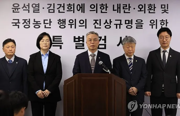 국정농단고발3건접수·피의자입건수사개시…이원석·송경호출금입장발표하는권창영종합특검(과천=연합뉴스)최재구기자=권창영특별검사가25일과천사무실에서윤석열ㆍ김건희에의한내란ㆍ외환및국정농단행위의진상규명을위한특별검사사무실현판식을마치고특검보들과입장발표를하고있다[email protected](과천=연합뉴스)박재현전재훈기자=3대특검이후남은의혹을수사하는권창영2차종합특별검사팀이'쌍방울대북송금'사건수사과정에서적법절차위반정황을포착했다고밝혔다.권영빈특검보는13일정례브리핑에서"서울고검에서이첩받은기록을일부검토해본결과,대북송금수사팀이수사과정에서적법절차를위반한것으로의심돼수사가필요하다"고말했다.종합특검은앞서서울고검인권침해점검태스크포스(TF)가수사중인'연어·술파티회유의혹'등사건들을넘겨받았다.TF는박상용검사가쌍방울대북송금사건수사과정에서술과음식을제공하고,편의를봐주는등의특혜를제공하면서이화영전부지사등이특정진술을하도록회유했다는의혹을수사해왔다.특검팀은당시수사과정에윤석열정부대통령실이부당하게관여한정황을포착하고사건을넘겨받았다.이후브리핑에서이를'초대형국정농단의심사건'이라고규정하며강도높은수사를예고했다.특검팀은해당사건을수사하고자파견검사1명,특별수사관2명,파견경찰관여러명으로구성된전담팀을구성했다.파견검사는이번주내로합류할예정이다.아울러지난주국정농단의혹사건과관련한시민단체고발장이3건접수됐으며피고발자를피의자로입건한뒤수사를개시했다고권특검보는설명했다.다만,권특검보는파악된절차위반의심사례가무엇인지묻는말에는"수사내용과관련해구체적인내용을말씀드리기어렵다"며답을피했다.해당의혹이특검법상명시된종합특검의수사대상이아니라는지적에는"특검팀이수사대상으로판단하고진행하는데그에대해바깥의사람들이얘기하는것은적절치않다고본다"며"부당한주장에대응하지않고수사에전념하겠다"고했다.2차종합특검팀브리핑(과천=연합뉴스)윤동진기자=권창영2차종합특별검사팀김지미특검보가30일과천특검사무실에서수사관련사항을브리핑하고있다[email protected]특검팀은지난주참고인44명,피내사자3명을소환해조사했다고밝혔다.김건희여사가연루된'도이치수사무마의혹'과관련해서는대검찰청에대한추가압수수색을진행했고,'내란동조의혹'과관련해윤석열정부의김태효전국가안보실1차장등도압수수색했다고설명했다.또특검팀은2024년5월김여사의명품가방수수의혹에대해전담수사팀을구성할것을지시했던이원석전검찰총장과당시김여사사건수사를맡고있던송경호전서울중앙지검장을출국금지조치한것으로확인됐다.특검팀은두사람을상대로대통령실이나박성재당시법무부장관등윗선으로부터수사무마와관련한외압을받은사실이있는지확인할방침인것으로전해졌다[email protected]▶제보는카톡okjeboCopyright©연합뉴스.무단전재-재배포,AI학습및활용금지