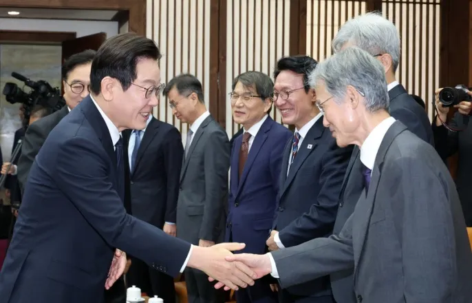 이대통령,시정연설앞서'APEC환담'연설뒤우의장과30분독대…정청래포함3자회동도시정연설을위해국회를방문한이재명대통령이4일국회의장접견실에서열린환담에서조희대대법원장과악수하고있다.2025.11.4/사진=연합뉴스이재명대통령이내년도예산안에대한국회시정연설에앞서우원식국회의장을비롯한5부요인,정당주요인사등과환담했습니다.이대통령은오늘(4일)오전9시40분쯤국회의장접견실에서우의장,정대표,김병기원내대표,조국혁신당조국비상대책위원장등과함께20분간만났습니다.국민의힘지도부는참석대상이지만불참했습니다.먼저우의장은"긴축재정에서확장재정으로정부의재정정책기조가바뀌는시기인데국회에서많은논의가있을것같다"며"한발더나아갈수있도록국회와정부가협력하는게매우소중한때"라고했습니다.그는아시아태평양경제협력체(APEC)정상회의의성공적개최를평가한뒤"APEC성과가경제와국민의삶에투영될수있도록국회와정부가협력해실제성과를만들어나가야할시기"라고말했습니다.이재명대통령이4일국회에서내년도정부예산안시정연설에앞서우원식국회의장을만나악수하고있다.2025.11.4/사진=연합뉴스이에이대통령은"APEC을치르며각국가가현재위기를극복하기위해정말최선을다하고있다는느낌이들었다"며"찰나도놓치지않고국익확보에골몰하는정상들을보며저도여전히많이부족하다는생각이들었다"는소회를전했습니다.환담에는조희대대법원장과김상환헌법재판소장등5부요인도동석했습니다.이대통령은이들에게APEC성료와관련해"우리대법원장님을포함해헌재,선관위,감사원등기관장여러분께서많이관심갖고지원해주셔서좋은성과를낼수있었다"고감사를표했습니다.이에조대법원장은짧게"예,예"라고답했습니다.민주당은정대표를비롯한당내강경파를위주로'조희대대법원'이지난5월이대통령의공직선거법사건을유죄취지로파기환송,6·3대선에서선거개입을했다며'조희대때리기'를이어가고있습니다.정대표는이대통령이환담장에입장하자박수를제안했고,이대통령은정대표에게"오랜만에본다"고말했습니다.이대통령은APEC정상회의준비위원장을맡았던김총리에게는"애쓰셨다"고격려했습니다.이어진비공개환담에서도주로APEC성과를중심으로서로덕담을주고받은것으로전해졌습니다.이재명대통령이4일서울여의도국회에서내년도정부예산안에대한시정연설을마친뒤본회의장에서나와더불어민주당정청래대표와악수하고있다.2025.11.4/사진=연합뉴스이대통령은시정연설직후국회를떠나지않고우의장과배석자없이30분간독대했는데,이번독대는이대통령이요청한것으로알려졌습니다.이대통령은우의장독대이후정대표를포함해추가로25분간3자회동도했습니다.회동후정대표는이대통령과어떤대화를나눴느냐는취재진질문에"그냥웃고좋은얘기만했다"며"모처럼만나이렇게얘기하니까너무기분이좋다"고답했습니다.정대표는페이스북에'오늘의포토제닉'이라는제목으로이대통령과자신이환하게웃으며손을맞잡은사진을올리기도했습니다.이와관련해현직대통령재판중지법(형사소송법개정안)처리추진을두고당정갈등이부각되자,국회를찾은이대통령이사전환담에이어별도환담을가지며분위기를누그러뜨리고정대표도화답한게아니냐는해석이나옵니다.[김나연디지털뉴스기자[email protected]]#이대통령#조희대#대법원장#예예#시정연설#국회의장#접견실#환담#재판중지법#독대#3자회동<CopyrightⓒMBN(www.mbn.co.kr)무단전재및재배포금지>Copyright©MBN.무단전재,재배포및AI학습이용금지.