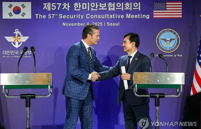 서울서SCM개최…韓국방비GDP3.5%로증액에공감·방산협력지상장비로확대공동성명에北비핵화관련표현들어가…대북압박수위는예년보다낮아져공동기자회견서악수하는한미국방장관(서울=연합뉴스)안규백국방부장관과피트헤그세스미국국방부(전쟁부)장관이4일서울용산국방부청사에서제57차한미안보협의회의(SCM)공동기자회견을마친후악수하고있다.2025.11.4[사진공동취재단][email protected](서울=연합뉴스)김호준이정현김철선기자=한미국방부장관이4일용산국방부청사에서열린제57차한미안보협의회(SCM)에서한국의핵추진잠수함도입을위해긴밀히협력하고전시작전통제권통제권전환에속도를내기로했다.안규백국방부장관과피트헤그세스미국방부장관은이날SCM에서▲핵잠수함건조▲전작권전환▲한국의국방비증액▲방위산업협력등한미동맹현안을폭넓게논의했다.지난달29일경주에서열린한미정상회담에서이재명대통령이요청해도널드트럼프대통령의동의를얻어낸핵잠수함건조와관련해두장관은양국유관부처와함께협력해나가기로했다.헤그세스장관은SCM이끝난뒤안장관과가진공동기자회견에서한국의핵잠수함도입관련질문에"도널드트럼프미국대통령이승인한것을다시한번확인해드린다"며"당연히군당국에선최선을다해적극지원할것"이라고답했다.그는유관기관인국무부,에너지부와도긴밀하게협조할것이라며"앞으로양국이선의를갖고계속토론해긍정적인결과로이끌것으로확신한다"고말했다.핵잠수함건조를위해서는▲대형잠수함설계▲소형원자료개발▲농축우라늄확보등해결할과제가많아외교부,기획재정부,산업통상자원부,과학기술정보통신부등유관부처가참여하는범정부태스크포스(TF)를구성해국책사업으로추진한다는게국방부의계획이다.국방부는핵잠수함원료인농축우라늄확보를위한미국과협의를거쳐2020년대후반건조단계에진입하면2030년대중후반에는1번함진수가가능할것으로판단하고있다.공동기자회견하는안규백국방부장관(서울=연합뉴스)안규백국방부장관이4일서울용산국방부청사에서열린제57차한미안보협의회의(SCM)공동기자회견에서취재진의질문에답하고있다.왼쪽은피트헤그세스미국국방부(전쟁부)장관.2025.11.4[사진공동취재단][email protected]안장관과헤그세스장관은이번SCM에서이재명정부가임기중실현을목표로하는전작권전환에도속도를내기로한것으로전해졌다.전작권전환은▲최초작전운용능력(IOC)검증▲완전운용능력(FOC)검증▲완전임무수행능력(FMC)검증등3단계를거치는데,현재FOC평가를마치고검증절차가진행되고있다.한미는이번SCM에서전작권전환조건충족을위한일정을논의했고,FOC검증을내년중마무리하는방안에공감한것으로전해졌다.두장관은트럼프행정부가동맹국에요구해온국방비증액문제도논의했다.안장관은이른시일내에국방비를GDP의3.5%로증액하겠다는우리정부의계획을설명했고,헤그세스장관은이에대한환영의뜻을표한것으로알려졌다.헤그세스장관은기자회견에서"(안장관이)대한민국정부가국방비지출을늘리고미사일과사이버등필수능력부분에서핵심적군사능력에대한투자를강화하기로말한것에대해많이고무돼있다"고말했다.두장관은조선업을포함한양국방위산업협력에대해서도의견을교환했다.헤그세스장관은기자회견에서"한국은조선업에서세계적수준의능력을갖고있다"며"미정부는잠수함뿐만아니라수상함,전투함등다양한분야에서협력을강화하길원하고있다"고밝혔다.그러면서"앞으로조선업뿐만아니라지상장비까지(협력을)확대하는것에공감했다"며"국방연구와과학기술분야의협조도강화하기로했다"고덧붙였다.제57차한미안보협의회의확대회의(서울=연합뉴스)안규백국방부장관과피트헤그세스미국국방부(전쟁부)장관이4일서울용산국방부청사에서열린제57차한미안보협의회의(SCM)확대회의에참석해있다.2025.11.4[사진공동취재단][email protected]은주요군사정책을협의·조정하는한미국방분야최고위급기구로,한국과미국에서번갈아가며열린다.양국국방수장은통상SCM을마치고합의한내용을바로공동성명형식으로내놓았는데,올해는양국이협의중인한미정상회담안보·관세분야'팩트시트'가나온이후공동성명을발표하기로했다.공동성명에는북한비핵화관련내용이포함됐지만,대북압박메시지는예년에비해표현수위가낮아진것으로전해졌다.트럼프대통령이희망하는북미정상회담을염두에두고대북압박표현의수위를조절한것이라는관측이나온다[email protected]▶제보는카톡okjeboCopyright©연합뉴스.무단전재-재배포,AI학습및활용금지