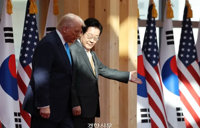 이대통령“김정은,트럼프진심수용못해서불발”트럼프대통령“인내심필요하겠지만,반드시해결”이재명대통령과도널드트럼프미국대통령이29일경북경주국립경주박물관에서열린공식환영식에서의장대사열을하기위해이동하고있다.김창길기자도널드트럼프미국대통령은29일한·미정상회담에서김정은북한국무위원장과의회동이사실상불발된것을아쉬워하며“단지시기를맞추지못했을뿐이다.문제해결을위해노력할것”이라며향후북·미대화에대한의지를드러냈다.이재명대통령은트럼프대통령의피스메이커역할을높이평가하며자신은“페이스메이커역할을충실히하겠다”고호응했다.트럼프대통령은이날국립경주박물관에서열린정상회담에서“한반도가공식적으로전쟁상태에있다는걸알고있다”며“하지만우리가어떻게해결할수있을지함께고민해보겠다”고말했다.그는“러시아와우크라이나를제외한모든(세계분쟁)문제를해결했다”며“그문제도곧해결될거라생각한다”고말했다.트럼프대통령은“나는김정은을매우잘알고있다”며“우리는매우잘지낸다.단지시기를맞추지못했을뿐이다”고말했다.트럼프대통령은북한문제를해결하겠다는의지를강조했다.그는“김위원장과모든분과함께문제해결을위해열심히노력할것”이라며“그일이잘풀려야한다는건상식이다.그리고반드시그렇게될거라고확신한다”고말했다.트럼프대통령은“시간이좀걸릴수도있고인내심이필요하겠지만,반드시그렇게될것이라고나는확신한다”고했다.이대통령은회담에서트럼프대통령을향해“취임한지9개월이됐는데전세계8곳의분쟁지역에평화를가져왔다.피스메이커로서역할을잘하고계시다”고말했다.그는“많은사람이죽거나대량파괴가이뤄질수있는큰문제들을거의한달에한번씩해결하고계시다”고말했다.이대통령은“그위대한역량을한반도에도평화를만들어내는큰업적으로남기면세계사적으로도큰일을이루시는것”이라며“대한민국국민들로서도정말로오래된큰문제를해결하는큰성과가될것”이라고말했다.또“트럼프대통령이가진큰역량으로전세계와한반도에평화를만들어주시면,제가그렇게할수있도록여건을조성하는페이스메이커역할을충실하게하겠다”고강조했다.이대통령은“김정은위원장이(트럼프)대통령님의진심을아직은제대로다수용하지못해서불발되긴했지만,대통령께서김위원장과회담을요청하고언제든지받아들수있다고말씀하신것그자체만으로도한반도에상당한평화의온기를만들어내는것”이라고말했다.이대통령은재차트럼프대통령제안이“하나의씨앗이돼한반도의거대한평화의물결을만드는단초가될것”이라고말했다.앞서트럼프대통령은이번아시아순방기간김위원장과회동을원한다는의사를수차례밝혀왔다.지난28일북한이서해상으로전략순항미사일발사를했다는소식을이날오전일본에서한국으로향하는전용기에서접한트럼프대통령은“그(김위원장)는수십년동안미사일을발사해왔다.그렇지않은가”라며개의치않아했다.그러면서“너무머지않은미래에김정은과만날것”이라고말했다.<곽희양기자[email protected],경주|민서영기자[email protected]>Copyright©경향신문.무단전재및재배포금지.
