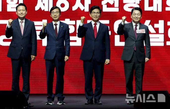 김문수"국힘아니라민주당해산해야…정청래가극좌테러리스트"장동혁"알곡·쭉정이가릴때…당망친사람들이주인행세하고있다"조경태"당대표가되면읍참마속심정으로내란동조세력정리할것"안철수"한줌의계파세력에흔들리지않고당원과국민만보며섰다"보수유튜버전한길씨참석,조경태·안철수후보발언때'배신자'연호[대구=뉴시스]이무열기자=장동혁(왼쪽부터),조경태,김문수,안철수국민의힘당대표후보가8일대구북구엑스코에서열린국민의힘제6차전당대회대구·경북합동연설회에참석해기념촬영을하고있다[email protected][서울·대구=뉴시스]김지훈정윤아하지현한은진우지은기자=국민의힘8·22전당대회에출마한당대표,최고위원후보들이8일보수텃밭인대구·경북(TK)에서첫합동연설회를열고표심을호소했다.김문수·장동혁후보는강력한대여투쟁을,조경태·안철수후보는당의쇄신을강조했다.이날유튜버전한길씨주도로몇몇당원들이일부후보들에게'배신자'를연호하는등소란이일기도했다.김문수당대표후보는이날오후대구엑스코에서열린대구·경북합동연설회에서"더불어민주당을해산해야할것인지,국민의힘을해산해야할것인지이재명대통령님께끝장토론을제안한다"며"민주당대표로뽑힌정청래는미국대사의관저담을넘고침입해폭발물을던지고시너로불을지른극좌테러리스트"라고밝혔다.김후보는"우리당국회의원107명이분열하면개헌저지선이무너지고,이재명총통은'4년연임제개헌'으로장기집권을획책할것"이라며"이재명독재를반대하는모든국민과손을잡고전국방방곡곡에서반이재명독재투쟁을전개해야한다"고주장했다.김후보는이날연설회직후기자들과만나전한길씨주도로당원들이일부후보들에게'배신자'를연호하는등소란이빚어진것을두고"어수선하게서로부딪히는모습이걱정된다.충돌이일어나는게마음이무겁다"며"전당대회취지에맞게상대방(이야기는)서로경청하는모양이좋겠다"고당부했다.장동혁당대표후보는"이재명을다시재판정에세우겠다"며"당원이주인이되는국민의힘을만들고,거짓선동과프레임앞에서물러서지않고당당히맞서싸우겠다"고말했다.장후보는"경선에서패배한사람들중에어떤사람은뒷짐만지고있었고,어떤사람은침까지뱉었다"며"오히려당을망치고약속을어긴사람들이주인행세를하고있다"고했다.그는"(윤석열전)대통령이다시구속되고인권이유린당하고있지만혹시나내란세력으로몰릴까절연하자는말만반복하고있다"며"이제알곡과쭉정이를가려낼때가됐다"고목소리를높였다.이날현장에서는전한길씨가조경태·안철수당대표후보와김근식등친한(친한동훈)계로분류되는최고위원후보들이발언할때직접'배신자'를외치며야유를주도하는모습이목격되기도했다.조경태당대표후보는"위헌적이고불법적인12·3비상계엄으로인해국민의힘은거의해체수준의참혹한순간을맞이하고있다"며"탄핵을반대하고,부정선거음모론을퍼트리고,윤어게인을부르짖을수록국민의힘의지지율은떨어지고있다"고말했다.조후보는"우리당은부정선거음모론자를끊어내지못하고있다.'윤어게인'을외치는자들을몰아내지못하고있다"며"읍참마속의심정으로혁신을완수하겠다"고밝혔다.그는"반헌법적이고불법적인행위를한윤석열전대통령을옹호하는세력들,계엄을옹호하는세력들은내란동조세력이라고규정한다"며"그들은제가당대표가돼서확실하게정리하겠다"고말했다.조후보가연설에나서자전한국사강사전한길씨등일부당원들이'배신자'라고외치기도했다.안철수당대표후보는"극단세력의대변자들이보수의심장인대구·경북에와서표를맡겨놓은것마냥손을벌리고있다"며"'극단주의자들이무슨짓을해도대구·경북은밀어준다'는이속내를이번전당대회에서반드시심판해달라"고했다.그는"지금은이재명대통령과이름조차거론하기싫은민주당당대표가우리를내란정당으로낙인찍고정당해산음모를꾸미고있다"며"이런위기에도지금국민의힘은계엄,탄핵,계몽,극단만연상되고있다"고말했다.안후보가"극단세력의선동가들과한줌의계파세력에흔들리지않고당원과국민만바라보며이자리에나섰다"고발언하자,관중석에서는"배신자"라는야유가터져나오기도했다.안후보는합동연설회를마치고기자들과만나이자리에서'배신자'를외친전씨를향해"전당대회에서다른사람들을선동하고다른후보의이야기를방해하는자체는정말적절치못하다"고지적했다.[대구=뉴시스]이무열기자=전한길한국사강사가8일대구북구엑스코에서열린국민의힘제6차전당대회대구·경북합동연설회에참석해있다[email protected]최고위원후보들도이날저마다지지를호소했다.신동욱최고위원후보는"(당내부에)언제터질지모르는화약고를안고(이재명정부와)싸울수는없다"며"제가최고위원이되면그화약의뇌관을제거하고반드시국민의힘을하나로만들겠다"고말했다.최수진후보도"더이상내부총질이아니라똘똘뭉쳐서이재명대통령과싸워야한다"며"거대야당과이재명의폭거에맞서우리당을지키고,당이뽑은대통령을애국시민과함께투쟁하며지켜왔다.현역의원중심으로내부를결집하고재정비해야한다"고강조했다.김재원후보는"대선이후에도우리는단일대오를만들지못하고바