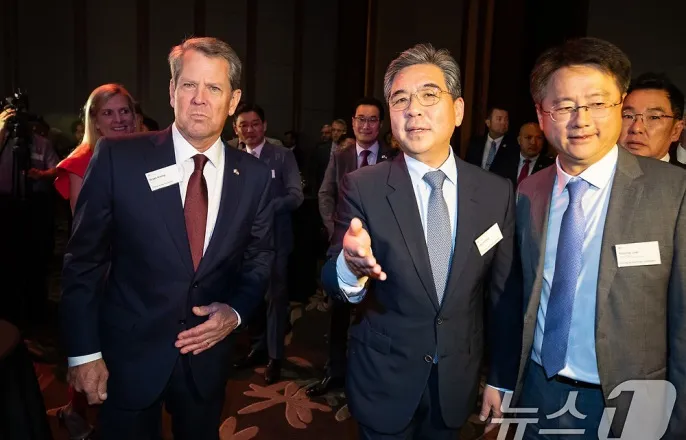 켐프주지사,현대차방문장재훈부회장과면담HI-GA사태점검리주지사,SK온과회동…무역협회만나"지원아끼지않겠다"장재훈현대자동차사장과브라이언켐프미국조지아주지사가17일서울여의도콘래드호텔에서열린'조지아의밤'행사에입장하고있다.2024.6.17/뉴스1ⓒNews1유승관기자(서울=뉴스1)박기범이동희최동현기자=한국기업들이대규모투자를이어가고있는미국조지아주와테네시주주지사가방한해국내주요기업과잇따라회동하며협력방안을모색했다.특히지난달발생한HI-GA배터리컴퍼니(현대자동차·LG에너지솔루션미국조지아주합작배터리공장)단속이후사태수습방안과함께비자,투자등다양한현안을논의한것으로전해진다.23일뉴스1취재를종합하면켐프주지사일행은이날오후1시20분쯤현대차그룹을방문해장재훈현대차그룹부회장,성김현대차그룹사장등을만났다.이번만남에서양측은HI-GA배터리컴퍼니단속으로인한공사지연영향과주정부지원책을점검한것으로전해진다.지난달미국이민세관단속국(ICE)의HI-GA배터리컴퍼니공사현장단속으로300명이넘는한국인이체포구금됐다.한국인근로자들은8일만에석방됐지만,건설일정에차질이발생하면서완공일정이2~3개월가량지연될것이라는전망이나온다.켐프주지사일행은이날저녁현대차그룹을포함한한국주요기업인들과만찬을함께할것으로전해졌다.켐프주지사측은24일에도LG에너지솔루션,SK온등과연쇄회동에나선다.SK온은조지아주커머스시에서22GWh규모단독배터리공장을운영중이다.조지아주바토우에서는현대차그룹과합작으로35GWh규모의배터리공장을건설하고있다.한화솔루션도만나큐셀부문(한화큐셀)이조지아주에짓고있는북미최대규모태양광모듈복합생산단지'솔라허브'프로젝트관련협력방안을논의할예정이다.한화큐셀은3조2000억원이상을투자해조지아주에2개공장(달튼·카터스빌)을중심으로하는태양광생산기지를구축중이다.조지아주는한국기업들의현지화전략의핵심지역중하나로꼽힌다.현재진행중인공장건설에앞서현대자동차가연간30만대생산규모의메타플랜트아메리카(HMGMA)준공하고미국현지생산핵심거점으로활용하고있다.현대차는추가투자를통해HMGMA생산규모를50만대까지늘린다는계획이다.23일서울강남구그랜드인터컨티넨탈호텔에서열린'미테네시주지사초청무역업계간담회'에참석한주요인사들이기념사진을촬영하고있다.앞줄왼쪽부터메타바이오메드오석송회장,빌리테네시주지사,한국무역협회윤진식회장,스튜어트맥호터테네시부지사겸상무장관,와이지-원송호근회장.(무역협회제공)빌리미국테네시주지사도이날한국에서이석희SK온최고경영자(CEO)를만나대미투자협력강화방안을논의했다.SK온은테네시주에포드와의합작법인블루오벌SK을세우고,내년가동을목표로연간45GWh를생산할수있는공장을건설중이다.리주지사는방한기간중LG화학,LG에너지솔루션,LG전자등과도만날예정이다.LG화학은테네시주클락스빌에30억달러이상을단독투자해연산12만톤규모의양극재공장을짓고있다.LG에너지솔루션은GM과합작한얼티엄셀즈2공장을운영중이다.LG전자는클락스빌세탁기·건조기공장을운영중이며,효성중공업은멤피스초고압변압기공장을증설하고있다.리주지사는이날한국무역협회초청'무역업계간담회'에참석해양국간협력방안도모색했다.이자리에서리주지사는한국을테네시주의핵심경제파트너로꼽으며"주(州)정부도경쟁력있는인력확보와비즈니스친화적환경조성,안정적인에너지공급등을위한지원을아끼지않겠다"고했다.윤진식한국무역협회회장은"원활한현지진출을위해우리기술자들의비자애로에주정부차원의각별한관심과지원을부탁드린다"며양자협력강화를요청했다,[email protected]©뉴스1.Allrightsreserved.무단전재및재배포,AI학습이용금지.