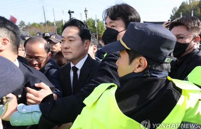 단추뜯어지고시민단체에막히고…15분만현장떠나"5·18정신모두의것이어야"…매달방문의지다져장동혁국민의힘대표가6일광주를찾아국립5·18민주묘지를참배하기위해들어서자광주전남촛불행동회원들이몸싸움을하며막아서고있다.2025.11.6/뉴스1ⓒNews1김태성기자(서울·광주=뉴스1)박소은손승환기자=장동혁국민의힘지도부의6일첫호남방문은빈손으로마무리됐다.정치권에따르면장대표는이날취임이후처음으로광주를찾았다.국립5·18민주묘지를참배하고관련단체들과의간담회도준비했다.그러나시민단체의격렬한반발에일부일정이무산됐다.장대표는이날오후1시39분정희용사무총장,김도읍정책위의장,박준태비서실장등당지도부와광주시북구에위치한국립5·18민주묘지를찾았다.하지만광주전남촛불행동등일부시민들은'극우선동내란공범장동혁은광주를떠나라'라고적힌손팻말을들고5·18민주묘역입구'민주의문'을가로막았다.일부시위대는"5·18정신을훼손하는장동혁은광주를떠나라","5·18묘역참배를거부한다"고외치며거세게항의했다.시민들이장대표와지도부에접근하면서몸싸움이격화되자경찰들이근접경호에나섰고,이과정에서시위대의현수막과피켓이찢어지기도했다.장동혁국민의힘대표가6일광주를찾아국립5·18민주묘지를참배하기위해들어서자광주전남촛불행동회원들이몸싸움을하며막아서고있다.2025.11.6/뉴스1ⓒNews1김태성기자장대표의옷이시민들에게잡혀잠시발길이묶이고재킷에서단추가떨어져나갔다.시위대는5·18민주항쟁추모탑앞에비치된장대표명의의조화를부수기도했다.장대표는이날이어지는시민들의항의를묵묵히받아냈다.다만추모탑앞시민들이몰리고항의가거세지자,오후1시51분장대표와지도부는추모탑앞에서묵념한뒤아무말없이돌아나갔다.몰리는인파에안전문제가제기될것으로판단해헌화와방명록작성은생략했다.결국국민의힘지도부는5·18민주묘지도착약15분만에현장을떠났다.한시민은"(장대표에게던질)계란도없다.계란도비싸다"고했고,일부시민들은'장동혁'을연호하며응원하기도했다.장동혁국민의힘대표가6일오후광주북구임동더현대광주부지에서현대관계자의설명을듣고있다.ⓒNews1이승현기자"진정성아직전달안돼"…'매달호남방문'의지도장대표는다음일정인광주광역시북구의종합쇼핑몰부지앞에서기자들과만나아쉬움을표하기도했다.그러면서도진정성을전달하기위해매달호남방문을멈추지않겠다고강조했다.장대표는"현장상황이여의치않아추모탑앞에서묵념으로만예를갖춰안타깝다.5·18정신은어느누구의것이아니라미래세대를포함해대한민국국민모두의것이어야한다고생각한다"며"국민의힘은그동안5·18에대해여러차례진정성있는사과도했고강령에도5·18정신을계승한다고명시했다.그런데도저희의진정성이아직다전달되지않은것같다"고했다.이어"진정성을갖고저희의마음이전달될때까지끝까지최선을다하고노력하겠다"며"앞으로매달호남을방문해서지역에있는분들과긴밀하게소통하고지역민들이당면한여러민생문제나지역현안문제를그누구보다앞장서서해결하겠다"고했다.장대표는판사시절전두환씨의사자명예훼손재판에서불출석을허가해재판을지연시켰다는시민단체의지적에대해"전씨의사자명예훼손사건에서불출석을허가한것은형사소송법에피고인의출석없이재판하지못하도록하고,예외적으로불출석재판이가능하게돼있다"며"그사건은(피고인의)불출석이가능한사건이었고,피고인이방어권을포기해굳이출석을강제할이유가없었다.특혜논란은적절치않다고생각한다"고했다.나아가"(윤석열전대통령의)탄핵심판과정이정당한절차로진행되지않았기때문에절차를문제삼고탄핵이기각돼야한다고주장한것"이라며"그것과지금5·18참배를연결해국민의힘당대표로서5·18영령들에게예를갖추고자하는것을막는걸이해하기어렵다"고했다.장동혁국민의힘대표가6일오후광주북구임동더현대광주부지를방문해발언하고있다.2025.11.6/뉴스1ⓒNews1이승현기자장대표는5·18정신헌법전문수록을두고도"당에서이미동의한다고말씀드렸다"며"그러나지금헌법개정논의자체가진행되지않고있다.여야이견이없기때문에적절한논의를거쳐헌법전문에반영될것"이라고했다.장대표는국민의힘이추진하는'호남정기방문프로그램'을지속이어나갈예정이다.앞서국민의힘은'매달장동혁이호남과함께합니다'(월간호남),'매달장동혁이호남을찾아갑니다'(국민통합정기배송)이라는슬로건을걸고정례적소통행보를이어나가겠다고강조한바있다[email protected]©뉴스1.Allrightsreserved.무단전재및재배포,AI학습이용금지.