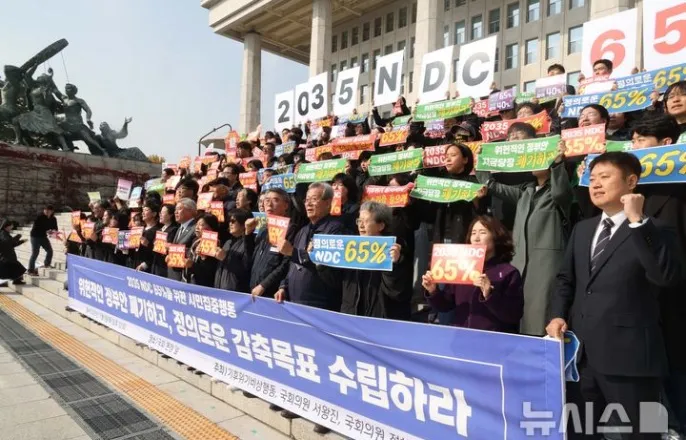 NDC최종토론회…당일까지도단일안못추려여섯차례토론회거치고도입장차조율실패[서울=뉴시스]조성봉기자=6일오전서울여의도국회본청계단에서열린'2035년국가온실가스감축목표수립에대한기자회견'에서참가자들이구호를외치고있다[email protected][세종=뉴시스]성소의기자=정부가2035년국가온실가스감축목표(NDC)후보로50~60%또는53~60%2개안을제시했다.공청회날까지NDC를확정하지못한것인데,여섯차례의토론회를거치고도각계입장차를조율하는데실패했다는비판이나온다.기후에너지환경부는6일오전국회에서2035NDC최종토론회를열고정부최종안을공개했다.NDC는각국이5년마다수립하는향후10년간의온실가스감축목표로,2035년NDC는올해안에유엔기후변화협약당사국에제출해야한다.앞서기후부는2035NDC후보로▲48%▲53%▲61%▲65%4개안을제시하고공론화를진행해왔다.하지만이날공개된자료에는2035NDC후보를'범위'형태로50~60%안과53~60%안두가지를제시했다.공청회당일까지도정부최종안을추리지못한것이다.기후부는2035NDC의상한선(60%)에대해서는정부내공감대가형성됐지만,하한선(50~53%)과관련해서는합의에이르지못했다고설명했다.NDC를범위로제시한이유에대해서도"여러불확실성을고려하고,산업계외시민사회간입장차이속에서균형점을찾기위한취지"라고해명했다.그만큼부처간이견이막판까지좁혀지지않았다는뜻으로풀이된다.그간산업계가최저선으로제시된'48%감축'도달성이어렵다는입장을내세워온반면,시민사회는2018년대비최소60%이상감축해야한다고주장해온점을고려하면,이는어느정도예견된상황이었다.지난2023년제1차탄소중립기본계획수립과정에서도'산업부문'감축률을두고기후부(당시환경부)와산업통상부(당시산업통상자원부)가충돌한전례도있었다.이에기후부는지난9월19일부터총6차례의토론회를열어각계각층의견을충분히수렴하겠다고밝혔지만,끝내입장차를좁히진못했다.[서울=뉴시스]조성봉기자=6일오전서울여의도국회본청계단에서열린'2035년국가온실가스감축목표수립에대한기자회견'에서참가자들이구호를외치고있다[email protected]정부가NDC를단일숫자로제시하지않고상한선(60%)·하한선(50~53%)을각각둔'범위'형태로제시했지만,사실상하한선이최종목표로인식될거라는우려도나온다.하한선만지켜도목표를달성한것으로볼수있기때문이다.최창민플랜1.5변호사는이날토론회에서"국가가NDC를달성하였는지에대한판단은결국하한인50또는53%를기준으로하게될것"이라며"결국50또는53%의하한이정부의온실가스감축의지를나타내는수치라는점을방증한다"고말했다.현준원한국법제연구원선임연구원도"NDC를범위로설정했는데,국제사회에필요한아이디어일수있으나법적으로는상한이아무런의미가없는얘기"라며"오히려혼란만일으킬수있다"고말했다.이번NDC가지난해8월헌법재판소의헌법불합치결정취지를충분히반영하지못했다는비판도제기된다.헌재는지난해8월2031~2049년까지의온실가스감축목표를설정하지않은현행탄소중립기본법은헌법에어긋난다며헌법불합치결정을내렸다.이에따라정부와국회는내년2월까지관련규정을개정해야한다.최변호사는"헌재결정에따라국회는내년2월까지배출량의누적을고려하면서감축량의진전을담보할수있는장기감축경로를입법해야한다"며"국회에는2035년감축목표를60~65%로정한법안들이다수발의돼있는데,정부안은이보다현저히낮은수준이라중대한위헌적하자가존재한다"고말했다.특히정부가하한선으로제시한후보중50%는'미래세대에부담을전가하지말라'는헌재의요구를충족하지못할가능성이크다는지적도나온다.2050년탄소중립을전제로매년동일한수준으로온실가스를감축했을때2035년에해당하는감축률이53%인데,50%는그에못미치기때문이다.현연구원은"헌법재판소에서요구한합헌성요건을모두갖추려면최소한선형감축은되어야하는데,안타깝게도1안(50%감축안)사실선형감축선상에있지않다"며"최소한의기준은2안(53%감축안)이상이어야할것같다"고말했다.반대로산업계에서는정부가최저선으로제시했던'48%감축안'도현실적으로달성하기어려우며,산업계에대한정부지원이크게확대돼야한다고주장했다.조영준대한상공회의소지속가능경영연구원장은"NDC논의에있어서반드시빠져서는안되는것의하나는비용부담"이라며"각자의안이가지고있는의미와사회적비용,재원조달파급효과등을함께고려해야할필요가있다"고말했다.조원장은"탄소감축을달성하려고하면,혁신적인기술이성장할수있는제도적뒷받침이절실하다"며"탄소중립을위해서노력하고자하는기업들에게정부가다양한지원책을내놓는것은굉장히다행인일"이라고했다.[서울=뉴시스]이영환기자=오일영기후에너지환경부기후에너지정책관이지난달13일서울중구대한상의회관에서대한상공회의소가개최한‘2035NDC산업부문토론회’에서발제를하고있다.(사진=대한상의제공)[email protected]*재판매및DB금지'졸속수립'논란도피할수없게됐다.충분한사회적합의를거쳐목표를정하겠다는기후부의약속과는달리,6차례중총5차례의토론회가불과2~3주사이에몰아치듯개최됐다.기후부가2035NDC수립작업을시작한것은지난해부터고,올6월정부가바뀌면서논의가지