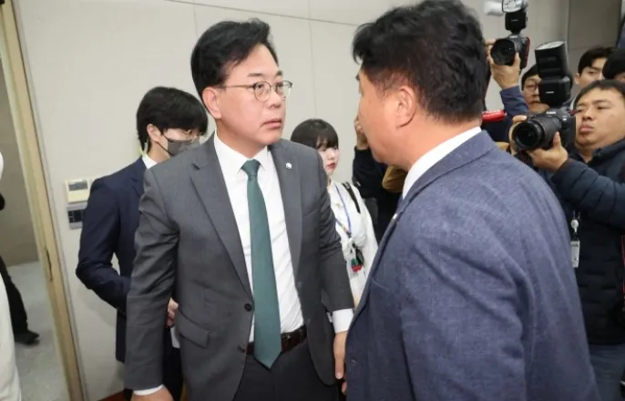 민주“尹특활비자료제출해야…주진우빠지길”野,김현지맹공…“그렇게까지호위하고싶나”송언석·이기헌,퇴장과정에서충돌‘배치기’충돌로치달은운영위국감-국민의힘송언석원내대표와더불어민주당이기헌의원이6일서울여의도국회에서열린운영위원회의대통령비서실과국가안보실,대통령경호처등에대한국정감사에서여야설전으로정회된직후이른바‘배치기’를하며충돌하고있다.2025.11.6연합뉴스이재명정부대통령실을대상으로6일열린첫국정감사가1시간만에파행으로끝났다.김현지대통령실제1부속실장의출석문제등을놓고거세게충돌한여야의원들은몸싸움까지벌였다.이날열린국회운영위원회의대통령실국정감사에서여야의원들은초반부터공방을벌였다.더불어민주당은윤석열정부의관저공사관련자료제출을요구했고,신장식조국혁신당의원은“2023~2024년윤석열정부당시대통령실에서사용했던특활비집행내용을제출해달라”고요구했다.국민의힘은김부속실장의인사기록카드를제출하라며맞불을놨다.또하준경경제성장수석과위성락국가안보실장등대통령실참모들이현안보고를이어갈때“요약해서말하라”며날을세웠다.여야간신경전은주진우국민의힘의원을향해민주당의원들이맹공을이어가며극에달했다.채현일민주당의원이“오늘국감은윤석열대통령실의국정농단과내란의진상규명에대한것도있다”면서“이자리에윤전대통령의법률비서관을역임한주의원이있는건이해충돌소지가매우크다.주의원이앉아계실곳은피감기관증인석”이라고선제공격에나섰다.이에주의원은신상발언을통해“제가김부속실장관련의혹을집중적으로제기하니민주당이조직적으로‘입틀막’하는것”이라며항의했다.주의원은“대통령실을그만둔지1년6개월이지났고,이미작년에도국감에운영위원으로참여했다.이해충돌문제를제기하는것을부끄러운줄알라”고반박했다.주의원은이어“그렇게김현지를호위하고싶으면맘대로한번해보시길바란다.그렇게까지김현지를보호하고싶냐”고목소리를높였다.이에여야간고성이이어졌고,민주당원내대표인김병기운영위원장은국감시작59분만에정회를선언했다.신상발언하는국민의힘주진우의원-국민의힘주진우의원과운영위원들이6일국회운영위원회회의실앞에서이날운영위회의정회직후발생한여야의원간물리적충돌이후열린기자회견에서신상발언을하고있다.이날국회운영위에서열린대통령비서실과국가안보실,대통령경호처등에대한국정감사에서는더불어민주당이기헌의원과국민의힘송언석원내대표가여야설전으로국감이정회된뒤언쟁을벌이다‘배치기’를하는물리적충돌이일어났다.2025.11.6연합뉴스정회후여야의원들이국감장을빠져나가는과정에서송언석국민의힘원내대표와이기헌민주당의원은‘배치기’를하며충돌하기도했다.송원내대표는곧바로기자회견을열고“정회후회의장문을나오는상황에서이의원이다가오더니그대로몸을부딪쳤다”면서국회선진화법에서금지하는폭력행위라고주장했다.송원내대표는그러면서“야당원내대표에대해대낮에테러와유사한폭력행위가발생했다”면서이의원과김위원장의사과를요구했다.이에이의원도기자회견을열고“국감을방해하는건국민의힘당신들이라고했더니(송원내대표가)뒤돌아서서제게몸을던지다시피했다”며“피해자는나”라고반박했다.운영위는약35분만에회의를재개했다.김소라기자Copyright©서울신문.무단전재,재배포,AI학습및활용금지.
