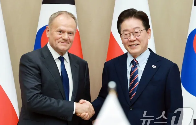 한·폴란드,'포괄적전략동반자'격상소고기수출등현안해결도언급이재명대통령과도날드투스크폴란드총리가13일청와대에서열린한·폴란드확대회담에서기념촬영을하고있다.(청와대통신사진기자단)2026.4.13ⓒ뉴스1이재명기자(서울=뉴스1)임윤지기자=이재명대통령과도날드투스크폴란드총리는13일양국관계를'포괄적전략동반자관계'로격상하기로했다.방위산업중심협력을넘어경제·기술·문화전반으로협력범위를넓히겠다는구상이다.이대통령은이날청와대본관에서열린한·폴란드확대회담모두발언에서"양국방산협력은단순한무기판매에그치지않는다.폴란드내공동생산과기술이전,교육훈련까지포함하는호혜적협력을통해폴란드방산생태계발전에도기여하고있다는점에서의미가크다"며이같이밝혔다.이어"이번방한을계기로양국관계를포괄적전략동반자관계로격상하게된것을매우뜻깊게생각한다"며"한국의산업분야경쟁력과폴란드의기초과학기술역량이시너지를발휘하면양국협력의새로운지평이열릴것"이라고강조했다.이대통령은또"문화·교육협력을강화하고인적교류를확대해양국국민간유대를더욱깊게하자"고제안했다.도날드투스크폴란드총리가13일청와대에서열린이재명대통령과확대회담에서발언하고있다.(청와대통신사진기자단)2026.4.13ⓒ뉴스1이재명기자투스크총리는"한국은폴란드에있어미국다음으로중요한동맹"이라며방산협력의전략적중요성을재확인했다.이어"양국관계의핵심키워드는'신뢰'"라며"안보뿐아니라농식품,첨단기술등다양한분야에서적극적으로지원하겠다"고밝혔다.특히투스크총리는"양국협력은'포괄적이고전략적'이라는두단어가핵심"이라며"평화와국제질서에양국이공동으로책임을지고기여하는역할이중요하다"고말했다.이날회담에서는경제협력현안도언급됐다.투스크총리는한국의폴란드산소고기수출문제와관련해"(이대통령이)바로해결해주신다고말씀해주셨다"며"폴란드시민들에게희망과긍정적인부분이고,적극성을보여주신대통령께다시한번감사드린다"고화답했다.두정상은개인적공감대도드러냈다.투스크총리는"첫공식회담이지만오래전부터알고지낸사이처럼느껴진다"며"서로비슷한삶을살았고가치관도비슷하기때문에이해할수있는분야가많았다"고말했다.이어"저도마찬가지로젊은나이에노동자로일했던경험이있고,민주주의와자유를위해서는큰대가를치러야한다는점도서로잘이해하고있다"며"어려운시기에이대통령께서개인적으로모범적인부분을보여주셨음에감사하다"고했다.이대통령은회담말미"투스크총리는폴란드자유노조운동의상징적인물인레흐바웬사와함께했던인물"이라며"민주주의의힘으로폴란드가지금유럽에서가장많이성장하고발전하고있는점을알고있다"고했다[email protected]©뉴스1.Allrightsreserved.무단전재및재배포,AI학습이용금지.