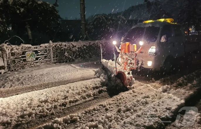 '양양면옥치8.7㎝'…동해안·산지대설특보9곳으로확대설악산등국립공원21곳탐방로통제강원강릉지역야간제설작업.기사이해를돕기위한자료사진.(강릉시제공,재판매및DB금지)(강릉=뉴스1)윤왕근기자=11일밤과12일새벽강원동해안과산지를중심으로많은눈이내리면서강원도가비상대응체계를가동하고본격적인대설대응에나섰다.강원도재난안전대책본부에따르면11일오후8시10분부터강릉·속초·양양평지를시작으로강원중부·북부·남부산지,고성·동해·삼척평지등으로대설주의보가확대돼,12일오전12시현재현재강원지역총9곳에대설특보가발효된상태다.기상청은"동풍의영향으로강수구름대가유입되면서강원영동지역에눈이이어지고있으며,일부지역은시간당1~3㎝의강한눈이쏟아지고있다"고밝혔다.이날오후6시부터12일오전12시현재주요지점적설량은산지중양양면옥치가8.7㎝로가장많았고,해안지역인양양이4.2㎝로뒤를이었다.속초조양3.2㎝,북강릉2.8㎝,삽당령2.4㎝,강릉구정2㎝등이뒤를잇고있다.이에강원도재난안전대책본부는11일오후8시10분을기해비상1단계를발령하고,제설장비163대와제설제510톤을투입하는한편,도로관리기관별로80개소의제설전진기지를활용해제설작업에나섰다.도는특히야간·새벽시간대도로살얼음등으로인한교통사고위험이높다고보고,취약도로에대한제설조치를강화하고있다.비닐하우스,취약시설,노약자거주지등도중점관리대상으로지정해예찰활동을벌이고있다.또올3월봄철'눈폭탄'으로고립된바있는해발800m강원대학교삼척도계캠퍼스를이용하는학생안전확보를위해제설차량2대를고정배치하고,교통통제·이동안내에도만전을기하고있다.설악산14곳과오대산곳등강원권주요국립공원21곳탐방로가통제중이다.기상청관계자는"12일까지동해안과산지를중심으로시간당1~3㎝의강하고무거운눈이내리겠다"며"축사·비닐하우스,약한구조물붕괴등시설물피해와빙판길에의한보행자안전에각별한주의가필요하다"고당부했다.강원동해안폭설자료사진.(뉴스1DB)[email protected]©뉴스1.Allrightsreserved.무단전재및재배포,AI학습이용금지.