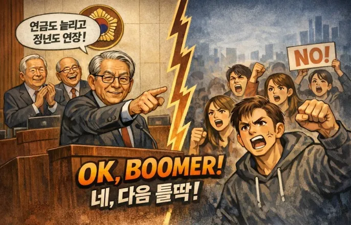 영포티,회사에선중심축인데국회에선소수60대이상급증…세계최상위권'고령국회'연금·정년연장논의서젊은층목소리실종세대갈등,의회밖분노로번질우려증가챗GPT"Ok,Boomer."2019년11월,한국말로치자면"네,다음틀딱"과같은노골적인세대갈등의단어가입법기관에등장한순간이었다.뉴질랜드의회에속한25세의클로이스워브릭녹색당의원은'탄소중립법안'토론중야유를받자이한마디로물리쳤다.클로이의원이언급한'부머'는전쟁직후출산율급증으로형성된세대를지칭한다.이말이쓰인북미에서는1946~1964년생이베이비부머로분류된다.기성세대가젊은세대의문제를무시하는것에대한반발심이담긴이장면은전세계로퍼지며하나의밈으로소비됐다.해외의회에서이러한세대의간극이노골적으로드러난장면은찾기어렵지않다.그러나유독한국만은이런흐름에서벗어나있다.영포티와넥스트포티의세대갈등이경제와사회영역전반에서두드러지게나타나는가운데,'정치'영역만은예외가된이유도이런맥락과맞닿아있다.예컨대한국정치권의세대충돌문제에관해묻고자한경닷컴<'영포티'세대전쟁>팀이접촉했던3040정치인중에는'선배정치인들의눈치가보인다'는취지의이유로실명인터뷰를거절한경우도있었다.해당정치인측관계자는그가인터뷰요청에난색을표했다는사실을전하면서"걱정이된다고하더라"라고했다.◇회사에선'중심축'…국회에선'끼인세대''영포티'는회사에서는조직의핵심실무를맡으며관리자가됐다.시장에선소비와투자의중심축이됐다.하지만입법과권력의장에선이들역시2030세대와다를바없는신세다.중앙선거관리위원회통계에따르면,한국국회는최근으로올수록'늙은국회'가되어가고있다.제헌국회(1948년)의의원평균연령은47세였는데,13대(50.9세)들어처음평균연령이50대에진입한이후꾸준히높아졌다.이후19대53.9세,20대55.5세,21대54.9세,22대엔56.3세로역대최고령을기록했다.19~22대국회의원연령별비중/그래프=이슬기한경닷컴기자연령대별구성비중을살펴보면,최근이런흐름은더욱굳어졌다.19~22대국회를거치면서40대의원의비중은26.7%에서10%로쪼그라든반면,60대이상의원의비중은23%에서35.3%까지늘었다.30대의원은19대(2.7%),20대93.7%),21대9(0.7%),22대(3.0%)로꾸준히5%미만을차지하고있다.22대국회에서20대는0명,30대는14명,40대는30명인데,50대는150명,60대는100명으로늘었고,70대이상도6명이나됐다.사실상86세대(1980년대학번,1960년대생)가국회를장악한셈으로,법적으로출마연령이낮아지는추세와는다르게국회는진입장벽이높아지고있는것이다.국제비교를해봐도한국국회의'고령화'는뚜렷하다.국제의회연맹(IPU)의자료를토대로전세계에서단원제의회를가진69개국의의원평균연령을분석한결과,한국은평균연령6위를차지해상위권에올랐다.그래프=신현보한경닷컴기자물론'평균연령이높다'는것이그자체로문제가되지는않는다.문제는사회곳곳에서벌어지는갈등을중재할수단이부족해질가능성을배제할수없다는점이다.입법기관에서2030은물론,경제사회전반에서주축이된40대의목소리까지제대로반영하지못하고있다는지적이제기되는이유다.더큰문제는그공백의비용을이제막세금을내기시작한,그리고앞으로가장오래부담을져야하는젊은세대가지게된다는점이다.◇20~40대의원의'공백',세대에불리한입법으로이어지나최근여야가합의로처리한소위'국민연금개혁안'은국회안영포티와넥스트포티의실상을잘보여준다.2025년3월국회는국민연금법개정안을여야합의로처리했다.보험료율을단계적으로9%에서13%로올리고,소득대체율을43%로올리는내용이골자다.본회의표결결과는찬성193명,반대40명,기권44명(재석277명)이었다.반대한의원40명중15명(37.5%)이3040의원들이었다.상당수의원들이"18년만의큰개혁"이라고자위했지만,"부담은젊은세대가더지고,혜택은기성세대가먼저본다"는비판도거셌다.여야가쟁점법안을합의로처리하는모습이오랜만에나왔지만,그과정에서젊은세대의일방적인희생이강요된것아니냐는평가가남게됐다.30~40대의원들은연금개혁안이국회본회의를통과된뒤에야뒤늦게"누가더받고,누가더내는지에대해정직하게말해야한다.더받을사람이아닌더내는사람부터제대로설득해야한다.이번에는청년세대를설득하기위한최소한의노력이없었다"며공동행동에나섰다.이런반발은'계란으로바위치기'수준의외침으로끝났다.지난3월2일국민연금개혁안에반대하는30·40세대여야의원들이23일국회소통관에서'더나은연금개혁을요구하는국회의원'이라는이름아래모여긴급기자회견을열고있다.왼쪽부터더불어민주당전용기,이소영의원,개혁신당이주영,천하람의원,더불어민주당장철민,국민의힘우재준,김재섭의원./사진=연합뉴스연금개혁안처리와관련모경종더불어민주당의원은한경닷컴과인터뷰에서"청년세대인식을녹여낼대화의장이부족했던게사실이다.대화가많이부족했다는생각을많이한다"며"연금개혁이특정세대에국한된게아니라국가적문제이다보니,개혁안을통과시키긴했으나부족한부분을메우기위해국회연금특위에서도여야할것없이머리를맞대고있다"고전했다.김용태국민의힘의원도"여야교섭단체가연금개혁합의를끌어낼때2030이끊임없이목소리를냈는데결
