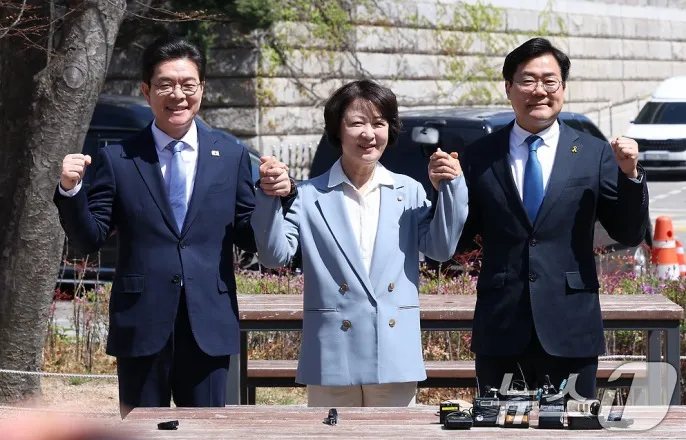 국회서만나결의문발표…수도권행정협의회구성계획도"주거·교통·미래공동운명…'진짜대한민국'현장서실현"6·3지방선거더불어민주당정원오서울시장후보(왼쪽부터),추미애경기도지사후보,박찬대인천시장후보가12일서울여의도국회소통관앞벤치에서열린수도권광역단체장후보'원팀간담회'에서손을잡고포즈를취하고있다.ⓒ뉴스1김성진기자(서울=뉴스1)장성희김세정기자=더불어민주당수도권광역단체장후보3인이12일손을맞잡고공통공약마련과공동선거운동을펼치기로결의했다.특히이들은수도권교통카드통합문제를먼저논의하자고뜻을모았다.더불어민주당정원오서울시장후보와추미애경기지사후보,박찬대인천시장후보는이날국회소통관앞에서만나결의문을발표했다.간담회는추후보가제안했다.이들은"민주당이함께할때가장강하다는것을다시확인했다"며"서울·경기·인천의협력을통해지방선거에서승리하고,이재명정부성공을든든히뒷받침하기위해다음과같이뜻을모았다"고밝혔다.세후보는"중동전쟁으로인한민생·경제위기극복을위해전쟁추경의신속한집행등이재명정부의총력대응을뒷받침하고공통공약과공동대응방안을마련한다"고말했다.선거운동기간에는공동일정및메시지를통해수도권문제해결을위한의지·비전을제시한다는구상도내놨다.아울러수도권교통·주거·산업등현안에대응하기위해수도권행정협의회를구성한다는계획이다.추후보는"교통·주거·산업모든문제가수도권이일체화돼수도권이함께문제를풀때대한민국이비전을가질수있고,모든문제를쉽게풀수있다"면서"맏형,맏이,맏누나격인경기도가두분과더자주자리를마련하고만나야할것같다"고말했다.박후보는"2600만명의수도권주민들의주거·교통·미래산업문제모든것이함께풀어야할공동운명"이라며"이번지방선거를통해이재명정부의'진짜대한민국'의꿈이중앙정부를넘어현장에서그대로실현되도록각별히협조·의논하겠다"고강조했다.정후보도"서울·경기·인천은하나의생활·경제·문화권이고,'대(大)서울권'이라고하는하나의단위가됐다"면서"(수도권이)힘을모아국가경쟁력을끌어가는측면도중요하다.교통·환경·제반의문제를의논하고하나씩정책으로합의해발표하겠다"고했다.수도권공통공약의중심은'교통'이될전망이다.세후보는간담회도중'수도권교통카드'와관련해짧은대화를나누기도했다.이후정후보는기자들과만나"서로의장점을살린교통카드를통합문제를먼저논의하자고했다"면서"첫논의수준이니합의가되면(공약과관련한)이야기가나올것"이라고전했다[email protected]©뉴스1.Allrightsreserved.무단전재및재배포,AI학습이용금지.
