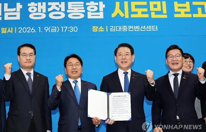대통령오찬간담회서전폭적지원의지"통합계기로특별한전기"시장·도지사·지역국회의원전원찬성…광역의회표결로추진(광주=연합뉴스)형민우박철홍천정인기자=이재명대통령이9일광주·전남행정통합에대해전폭적인지원을약속하며힘을실어주자정치권과시도지자체가협력을약속하는등통합추진이급물살을타게됐다.지역국회의원들은오는6월지방선거가시작되기전행정통합을마무리하기위해신속한추진이필요하다는데공감하고추진방식등을합의하며속도를내기로했고,광주시와전남도도구체적인추진방법을담은합의문을발표하고올해'통합특별시'출범을공식화했다.행정통합합의한강기정시장과김영록지사(광주=연합뉴스)조남수기자=강기정광주시장과김영록전남지사와참석자들이9일오후광주서구김대중컨벤션센터에서열린광주ㆍ전남행정통합시도민보고회에서합의문을발표한뒤기념사진을찍고있다[email protected]광주·전남행정통합추진방식합의…광역의회의결로추진키로광주·전남국회의원들은9일이대통령과의오찬간담회를마친뒤국회기자회견을통해광주·전남통합에대해전원이찬성한다는의사를밝혔다.이들은다가오는지방선거에서통합선거를실시하기위해신속한절차가필요하다는데공감했다.이에따라행정통합결의절차는주민투표가아닌광역의회의결로결정하는방식을합의했다.또시도청은그대로유지하되명칭은'무안청사'또는'상무청사'등과같이지역의특성과상징성을살리는방향을검토하기로했다.중앙당에는통합특별시를지원하는특례법안을만들기위한특위구성을요구하기로했다.이와별도로광주시와전남도는통합광역지방정부를'특별시'형태로출범시키로하고,행정통합추진방법과절차를담은합의문을발표했다.시도는'광주·전남행정통합특별법'에재정지원과행정권한이양을명시하고,통합이후광주·전남27개시·군·구의균형발전을위해'균형발전기금'을설치하는데공동협력하기로했다.통합광역정부출범이후에도광주5개자치구와전남22개시·군은현행기초자치단체체제를유지하며,기존광주시청과전남도청청사는존치해통합광역정부청사로활용한다는데의견을모았다.또의회·경제계·학계·시도민등이참여하는'광주·전남범시도민행정통합추진협의회'를조속히구성하고,권역별설명회와토론회등시도민소통절차를병행하기로했다.특히통합광역정부의법적지위는'특별도'가아닌'특별시'로설정하고,서울특별시에준하는지위와권한확보를위해양시·도가공동대응하기로합의했다.이재명대통령,경제성장전략국민보고회발언(서울=연합뉴스)한상균기자=이재명대통령이9일청와대에서열린경제성장전략국민보고회에서발언하고있다.2026.1.9[청와대통신사진기자단][email protected]이재명대통령"통합호남에특별한전기"이대통령은이날간담회에서"광주·전남은대한민국민주주의에크게기여했지만,그동안국가가충분히도와주지못했다"며"이번통합을계기로특별한전기를마련하고싶다"고밝혔다고참석자들이전했다.강기정광주시장과김영록전남지사에따르면이대통령은행정통합의난이도를언급하며"통합은결코쉬운일이아니고다양한의견이있을수밖에없다"면서도"지금은분란을키우기보다신속하게통합을추진하는것이중요하다"고강조했다.재정·자치권과관련해서는"지방의재정자립을위해기존에제안된수준을훨씬뛰어넘는구상을하고있다"며"재정권한뿐아니라조직,인력,기능등자치권한전반을넘길수있다"고밝혔다.또"통합에따른재정인센티브는시도민기대이상이되도록하겠다"며"재정특례는총액을정한뒤구체적인지원방안을마련하자"고말했다고시도지사는전했다.산업육성과기업유치에대해서도이대통령은"호남에최대규모의기업도시를만들고싶다.산업·기업유치는무리해서라도도와야한다"며"재생에너지전환은절호의기회인만큼이를계기로획기적인대전환을만들자"고강조했다.공공기관2차이전과관련해서는"나누기식배분은바람직하지않다"며"통합지역에는공공기관을집중적으로배치하는방안을고민하겠다"고언급했다.통합주민투표여부에대해서는"시·도의회의견수렴방식역시절대작지않은장점을갖고있다"며"불필요한갈등을키우기보다통합을안정적으로추진하는것이중요하다"고강조해의회동의방식에힘을실었다.이대통령은"통합과정에서지역이손해를봐서는안된다"며"광주·전남행정통합이다른지역의선도모델이되도록주민들과충분히소통하며추진해달라"고당부했다.'행정통합선언문'발표하는강기정광주시장(광주=연합뉴스)정다움기자=2일오전광주북구운정동국립5·18민주묘지에서강기정광주시장·김영록전남지사가참배를마친뒤행정통합선언문을발표하고있다[email protected]신속추진에공감대…"통합효과분명하게제시해야"강시장은"오늘대통령과대화해보니제가생각하는것보다10배는더의지를갖고그의미도더크게,더깊이생각하고있다는것을확인했다"며"6·3지방선거전에꼭행정통합을실현하겠다"고의지를나타냈다.김지사역시"(행정통합은)지역균형발전측면도있지만호남이민주정부하에서하에서제대로대접받지못한상황에대해특별한지원을약속한것"이라며"신속하게시도의회의결을받을수있도록노력하