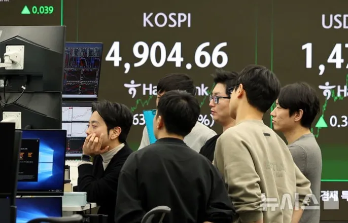 약보합출발코스피,상승반전4900선거래뉴욕증시휴장...차익매물경계심리고조반도체대장주하락출발코스닥,0.7%상승한975선[이데일리김경은기자]12거래일연속사상최고가랠리를이어가며4900선을돌파한코스피지수는20일장초반방향성을탐색하며보합권에서공방하고있다.엠피닥터에따르면20일오전9시7분기준코스피지수는전거래일대비2.54포인트(0.05%)오른4907.20에거래되고있다.지수는약보합권에서출발한뒤4900선에서공방중이다.20일오전서울중구하나은행본점딜링룸전광판을통해나오는코스피지수가하락세를보이고있다.(사진=뉴스1)간밤미국증시가마틴루서킹주니어데이를맞아휴장한가운데,오천피돌파기대를모으고있는코스피지수는연일급등에따른차익매물경계심리와미국의상호관세에대한연방대법원판결에대한불확실성에영향을받는모습이다.앞서미대법원은지난16일(현지시간)심리해온사안에대한판결을공개할다음날짜로오는20일을지정했다고홈페이지를통해밝혔다.어떤사안인지는공개하지않았다.한지영키움증권연구원은“이날증시는자동차를비롯해전일폭등한업종을중심으로차익실현물량이출회되면서방산,조선등관세무풍주로재차수급이이동하는등순환매장세가전개될수있다”고전망했다.투자자별로는개인이2713억원을순매수하는가운데외국인과기관은각각1676억원,1115억원어치를순매도하고있다.반도체대장주들은이날하락출발했다.코스피시가총액1위삼성전자(005930)는전거래일대비800원(0.54%)내린14만8500원에거래되고있고,SK하이닉스(000660)는6000원(0.79%)하락한75만8000원을기록중이다.이밖에시총상위기업가운데상승종목은현대차(005380)(2.19%),LG에너지솔루션(373220)(2.26%),한화에어로스페이스(012450)(2.11%),기아(000270)(1.18%)등이다.반면삼성전자우(005935)(-1.22%),HD현대중공업(329180)(-1.85%),두산에너빌리티(034020)(-0.21%)등은하락했다.같은시각코스닥지수는전거래일대비6.80포인트(0.70%)오른975.16을기록중이다.개인이826억원을순매수한가운데외국인은883억원을순매도하고있다.기관은87억원소폭사자우위다.코스닥시총상위종목대부분이상승거래되고있다.알테오젠(196170)은전거래일대비8000원(1.61%)오른50만4000원에,에코프로비엠(247540)은5300원(3.44%)오른15만9500원에거래중이다.코스닥시총상위10위종목가운데펩트론(087010)(-1.45%)만하락세다.이밖에에코프로(086520)(3.37%),레인보우로보틱스(277810)(2.52%),삼천당제약(000250)(1.81%),코오롱티슈진(950160)(3.71%),리가켐바이오(141080)(1.31%)등은상승행렬에가담했다.김경은([email protected])Copyright©이데일리.무단전재및재배포금지.