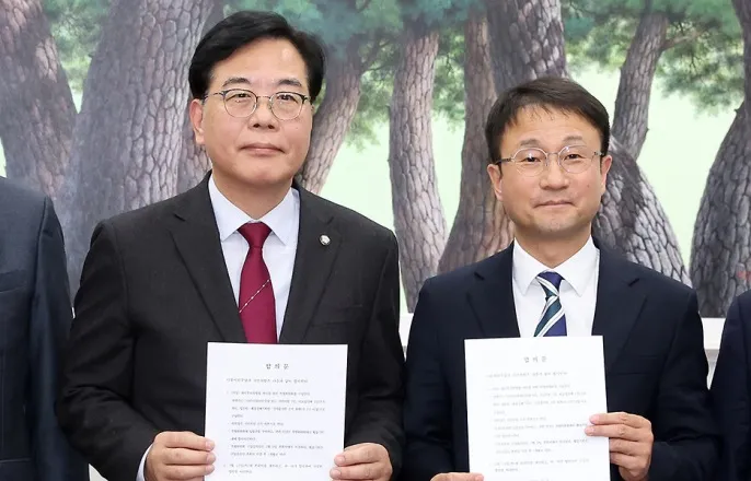 원내대표회동“9일본회의의결”합의특위에입법권부여…野,비준요구철회여한구빈손귀국…USTR대표못만나“美정부,韓관세인상관보게재협의중”미국이한국국회의‘입법미이행’을이유로관세인상을공식화하려는움직임을보이는가운데더불어민주당과국민의힘은4일한·미관세협상이행입법인‘한·미전략적투자관리를위한특별법안’(대미투자특별법)처리를위한특별위원회구성에전격합의했다.특위활동기한은한달로특위위원장은국민의힘이맡기로했다.민주당한병도,국민의힘송언석원내대표는이날국회본청에서회동을갖고이러한내용을담은여야합의문을도출했다.여야는대미투자특별법처리를위한특위구성안을9일본회의에서의결하기로했다.한병도더불어민주당원내대표와송언석국민의힘원내대표가4일서울여의도국회에서미국의관세재인상과관련해대미투자특별법처리를위한특별위원회를구성하기로합의후합의문을들고기념촬영하고있다.뉴스1특위위원은총16명으로민주당8명,국민의힘7명,비교섭단체1명으로구성하되정무위원회·재정경제기획위원회·산업통상자원중소벤처기업위원회위원을1명이상씩포함하기로했다.양측은특위를3월9일까지운영하기로했으며입법권도부여하기로했다.사실상대미투자특별법처리시한을3월9일로설정한것으로풀이된다.국민의힘은요구해왔던관세협상비준안을더주장하지않기로했다.송원내대표는“비준안은특위에서논의하지않고다음에이주장을계속하지도않을예정”이라고설명했다.비준여부를두고줄다리기를이어온여야가극적합의에이른것은국회입법이지연될경우,‘관세폭탄’이현실화할것이라는위기감이반영된결과로풀이된다.앞서도널드트럼프미국대통령은지난달26일(현지시간)한국의입법지연을이유로자동차·목재·의약품과기타상호관세(국가별관세)를기존15%에서25%로재인상하겠다고밝혔다.미국측과통상현안논의를위해미국을방문하는여한구통상교섭본부장이지난1월29일인천국제공항1터미널을통해출국하고있다.연합뉴스트럼프대통령의관세인상압박에대응하기위해미국일정을소화한여한구산업통상부통상교섭본부장은“대화를지속해야한다”고만밝혔다.미국이한국관세인상발표를관보로공식화하려는움직임도재확인했다.여본부장은3일워싱턴일정을마치고뉴욕으로돌아가귀국길에나서기전기자들과만나릭스위처미무역대표부(USTR)부대표와2시간넘게심도있는논의를했다며이같이말했다.여본부장은한국에대한관세인상을관보에게재하기위한절차가미국내에서진행중이냐는질문에“아직은미국정부내에서도협의과정을거치고있는것으로파악하고있다”고밝혔다.관세인상에대한트럼프대통령의발표를행정적으로공식화하고구체적인시행일정을정하는관보게재절차가진행되고있는것은사실이나,시기가결정된단계는아니라는것이정부판단이다.여본부장은“한국이약속대로(대미투자를)이행할의지가있고,지금진전을보이고있다는부분을충실히설명하는데주안점을뒀다”며“미국측은우리의시스템이(자신들과)다른부분을이해못한부분이있는데앞으로도아웃리치(대미접촉)를계속해야할것으로보인다”고말했다.대화상대방인제이미슨그리어USTR대표와는만나지못했다.전날만나기로했으나미국의대(對)인도관세인하발표로일정이어긋난것으로알려졌다.도널드트럼프미국대통령.AP연합뉴스정부는김정관산업통상부장관과여본부장을연이어미국으로보내설명에나섰다.김장관은하워드러트닉미상무장관을만난뒤앞서귀국했다.김장관은“불필요한오해는해소됐다고생각한다”면서도미국이관보게재를준비하고있다고전했다.여본부장은미국측이미국모회사가지분을100%보유하고있는쿠팡의정보유출사태에대한한국정부의책임추궁을문제삼는것아니냐는시각에대해“미의회에서상하원의원,보좌진들과비공개간담회를갖고여러문제에대해논의했다”며“쿠팡은통상이슈와분리해야한다는것을전에도여러번밝혔다”고답했다.워싱턴=홍주형특파원,이도형·변세현기자Copyright©세계일보.무단전재및재배포금지.