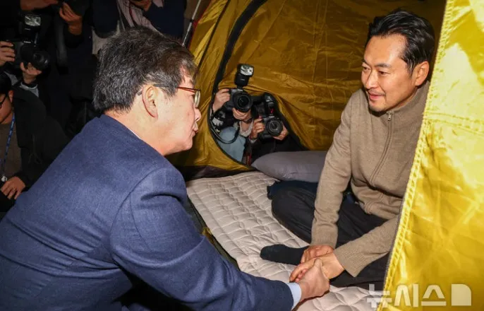 국회의료진병원이송권고거부…"아직버틸수있어"보수진영통합움직임도…유승민"해결책찾아야할때"소장파지지입장밝혀…"당통합저해하는언행중단해야"[서울=뉴시스]김명년기자=유승민전의원이20일오전서울여의도국회로텐더홀에서통일교·공천헌금'쌍특검'을요구하며엿새째단식농성중인장동혁국민의힘대표를찾아손을잡고대화하고있다[email protected][서울=뉴시스]이승재하지현한은진우지은기자=장동혁국민의힘대표는20일여권의통일교유착과공천헌금의혹에관한특검법수용을촉구하면서엿새째단식을이어갔다.장대표는이날오후6시께자신의페이스북에직접쓴글을올리며"지지자들이,당원들이내어깨를받치고있다"며"국민이물을선물한다.봄이오는소리.민심의봄"이라고했다.그는단식농성장책상에놓인장미꽃한송이를자신의상황에비유하면서"빨간하트로장미의어깨를살짝받쳐주었다.이제잎까지생생해졌다"며"신나서물도더선물했다"고적었다.장대표는이날오전에올린자필메시지에서"더불어민주당은미동도없다.이제더욱분명해졌다"라며"정권이흔들릴정도의부패가있는것이다.내가버틸수록그확신은강해질것"이라고했다.그러면서"민주당은이순간에도자백을반복하고있다"라며"국민의심판은,국민의특검은이미시작됐다"라고덧붙였다.아침에는단식을이어가던중국회본청문밖으로나와"목숨을걸고극단적인방법까지동원해서민주당에답을요구하고있다"며"재판할때경험을생각해보면똑같은질문에답을하지않으면판사들은사실상자백을했다고인정한다"라고했다.또한"민주당이답을하지않으면국민께는그자체가자백"이라고강조했다.장대표는지난15일부터국회본청로텐더홀에서단식농성을벌이고있다.물과소량의소금외에는음식물을먹지않고있는데,단식나흘째부터건강상태가악화해소금조차제대로섭취하지못하는것으로전해졌다.그는국회의료진으로부터병원이송을권유받고있지만,이를받아들이지않고단식을이어가는중이다.서명옥의원은이날오후4시께국회의료진진료직후기자들과만나"장대표의바이털(활력징후)체크결과전반적으로모든수치가정상이하로떨어지고있다"고전했다.서의원은"산소포화도측정결과도정상수치보다많이떨어졌다"며"의사의경고가한네번째인데아쉽게도장대표가병원이송을완강히거부하고있다"고설명했다.이어"장대표가'아직버틸수있다.견딜수있다'고말했다"며"의학적으로단식을하면7일내지10일사이가2차마지막위기상황이라고한다.단식7일째인내일을대비해이송준비를갖추고있다"고했다.[서울=뉴시스]김명년기자=통일교·공천헌금'쌍특검'을요구하며엿새째단식농성중인장동혁국민의힘대표가20일오전서울여의도국회로텐더홀에서농성을이어가고있다[email protected]장대표의단식이이어지면서보수진영결집의움직임도보인다.대표적인중도보수인사인유승민전의원은이날단식농성장을찾아장대표의손을잡았다.유전의원은"일부문제에있어서로생각이다르더라도국민이신뢰할수있는보수로어떻게거듭날수있는가를머리맞대고해결책을찾아야할때"라고말했다.다만6·3지방선거경기도지사출마가능성에대해서는"전혀생각하지않고있다"고했다.초·재선소장파의원들의모임인'대안과미래'도장대표를찾아단식투쟁을지지한다는입장을밝혔다.이들은그간당안팎현안에대한지도부의행보에쓴소리를내왔다.모임간사인이성권의원은"지금국민의힘에필요한것은당의통합"이라며"당의통합을저해하는어떠한언행도중단돼야한다는것을결의했다"고말했다.주진우·서지영의원등10여명의초선의원도장대표를만난뒤"장대표가목숨을걸고하는단식에강력한지지를표명한다"는입장을냈다.주의원은"제1야당대표가목숨걸고특검법관철을위해이자리에서고생하는데민주당사람들은다어디갔나"라며"청와대앞에서규탄시위를하는데,정무수석은새로임명됐음에도코빼기도안비쳤다"고비판했다.황우여전비상대책위원장을비롯한당의상임고문단도장대표를찾아격려했다.김진태강원지사,이강덕포항시장,조원진우리공화당대표등도단식농성장을찾았다.[서울=뉴시스]김명년기자=통일교·공천헌금'쌍특검'을요구하며엿새째단식농성중인장동혁국민의힘대표가20일오전서울여의도국회로텐더홀농성장텐트에서누워있다[email protected]☞공감언론뉴시스[email protected],[email protected],[email protected],[email protected]©뉴시스.무단전재및재배포금지.