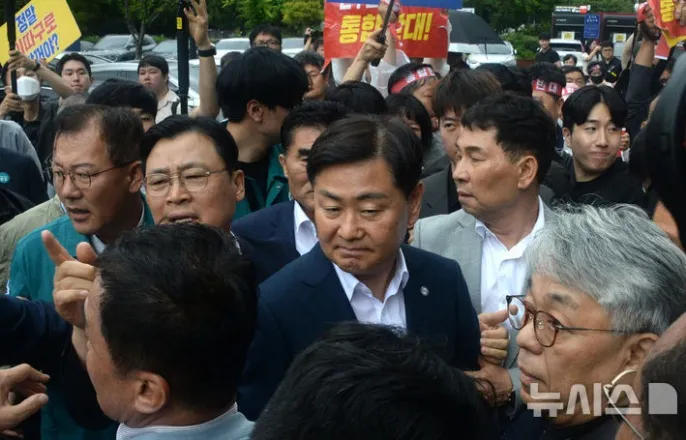 김관영전북지사22일완주군청·군의회방문예정통합찬반단체일제히집회신고…경력200명배치[완주=뉴시스]김얼기자=완주군민과의대화를위해완주군청을찾은김관영(가운데)전북특별자치도지사가25일전북완주군청에서대화를거부하는완주-전주통합반대완주군민대책위원회의거센항의에장내를빠져나오고있다[email protected][완주=뉴시스]최정규기자=김관영전북특별자치도지사가22일2026년초도방문으로완주를다시방문하는가운데이번에완주군민들과대화를나눌수있을지귀추가주목된다.21일전북도에따르면22일오전9시30분김지사는완주군을방문한다.방문직후완주군의회를찾아가군의원들과대화가예정되어있다.이후오전9시55분부터도민과의대화가진행된다.하지만이번방문도김지사에게는순탄치않을전망이다.최근이재명정부의통합기조에맞춰'완주-전주통합'이다시수면위로올라왔고이에따른저항이만만치않을것이란예측때문이다.지난해이미2차례완주군도민과의대화가무산됐고,완주군의회에도들어가지못하는상황이벌어진바있다.완주전주통합반대완주군민대책위원회는지난14일전북특별자치도의회기자실에서간담회를갖고"김관영도지사는행정통합추진으로초래된군민갈등과지역분열에대해책임을인정하고완주군민앞에공식사과하라"고주장하면서봉쇄를예고했다.완주군의회도지난19일기자회견을열고"완주·전주행정통합과관련한김지사의'소통이미흡했다'는취지의최근사과가진정성없는'정치적쇼'에불과하며정부의광역통합정책을아전인수격으로해석해완주군민에게통합을강요하고있다"고비판의날을세웠다.이에김지사는긴급기자회견을열고"도지사가소통에미흡했다는질타와완주군민들의마음을깊이헤아리지못했다는지적에대해사과드린다"면서도완주군의회와군민들을향해결단을내려달라고호소하기도했다.이런상황속에서도김지사의의지는강력하다.완주를방문해'통합강드라이브'를예고한만큼저항이예고됐음에도완주군방문을강행하겠다는의지다.이번방문에전북경찰도긴장을유지하고있다.앞서김지사는2024년과2025년완주군청을방문했으나일부군민과군의회의원등과물리적충돌까지벌어진바있기때문이다.특히이번에는반대측뿐아니라찬성단체일부도집회신청을한상황이다.반대측은완주·전주통합반대완주군민대책위원회250여명,찬성측완주·전주통합2036하계올림픽추진위원회50여명이완주군청앞에집회신청을한상황이다.경찰도기동대2개중대,완산서형사과정보과등경찰력200명안팍을완주군청인근에배치한다.☞공감언론뉴시스[email protected]©뉴시스.무단전재및재배포금지.
