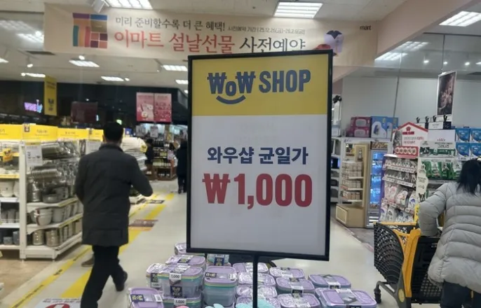 이마트왕십리점와우샵가보니전상품1000~5000원대균일가4개店시범운영…목표매출3배실제체감가능한초저가구현해이마트왕십리점내위치한와우샵.[변덕호기자]“장보러왔다가나가는길이었는데,천원짜리컵이있더라고요.마침필요해서하나집었어요.”22일오후방문한서울성동구이마트왕십리점내‘와우샵(WOWSHOP)’.이곳에서만난50대주부A씨는‘1000원’이라고적힌가격표가붙은컵을집으며이같이말했다.왕십리점에서주로장을본다는그는이날도반찬거리를산뒤계산대로향하던중‘와우샵균일가1000원’이라는팻말을보고발길을멈췄고,결국필요한물품을하나더장바구니에담았다고했다.“나가는길에하나더”이마트장보러온고객이와우샵에들러물품을고르고있다.[변덕호기자]시범운영한달차를맞은이마트숍인숍‘와우샵’은장을보러온고객들의동선을따라자연스럽게스며들고있었다.식료품을구매한뒤계산대를향하던손님들이‘1000원’,‘2000원’가격표가붙은컵과그릇,수납용품앞에서발걸음을멈추고생활용품을하나씩장바구니에더담는모습이이어졌다.식료품중심의장보기에초저가생활용품소비가겹쳐지는모습이다.와우샵은전상품을1000~5000원균일가로구성해다이소와비슷한가격대를내세웠다.지난해12월왕십리점을시작으로현재은평·자양·대구수성점등4개점포에서시범운영중이다.이마트왕십리점와우샵디지털가전매대.[변덕호기자]와우샵에서판매되는품목역시다이소를떠올리게했다.급하게필요해바로집어들수있는생활용품위주로매대가채워져있었다.디지털코너에는미니가습기(5000원),유선마우스(4000원),충전기(4000원)가진열돼있었고,여행용품존에는목베개(5000원),네임택(2000원),파우치(4000원)등이놓여있었다.욕실화와옷걸이,중수납함등홈퍼니싱용품도눈에띄었다.청소솔,테이프클리너,바스켓,밀폐용기,양념통,수저류,채반등생활전반을아우르는품목이고르게배치돼있었다.최근다이소가강화하고있는뷰티카테고리역시빠지지않았다.토너·에센스·미스트·에멀전등기초화장품은4950원에판매되고있었고,메이크업퍼프는1000원에구매할수있었다.다이소대신마트안에서끝낸다이마트왕십리점와우샵과같은건물에입주한다이소비트플렉스왕십리역점.[변덕호기자]와우샵의가장큰특징은이마트동선안에자연스럽게녹아들어있다는점이다.실제로매장에서는장을보러왔다가생활용품을함께구매하는소비자들을어렵지않게볼수있었다.이마트왕십리점과같은건물에입주한다이소를가려다와우샵으로발길을돌리는손님도적지않았다.왕십리역인근에거주하는30대주부B씨는“장보러왔다가컵이나생활용품을한두개씩같이사게된다”며“가격이워낙저렴해서굳이따로다이소를갈필요가없다는생각이들었다”고말했다.그는“아이용품이나주방소품처럼당장필요한물건은장보면서함께해결하는편이더편하다”고덧붙였다.한양대에재학중인20대자취생C씨역시“가격부담이거의없어서계획없이도집게된다”며“생활용품이떨어질때마다일부러다른매장을찾지않아도된다는점이좋다”고말했다.목표치3배…숫자가보여준‘가능성’시범운영한달차에불과하지만,와우샵은기대이상의초반성과를보이고있다.이마트에따르면와우샵은지난해12월17일왕십리점오픈이후올해1월18일까지각점포별일평균매출이목표대비최대3배를웃도는성과를기록중이다.특히홈퍼니싱(중수납함·옷걸이·욕실화)과주방용품(보관용기·조리도구·도마)카테고리가매출을견인했다.이마트관계자는“고물가상황에서가격체감도가높은생활필수품위주로수요가몰렸다”고설명했다.업계최저가수준으로기획한‘와우픽(WOWPick)’31개상품도흥행에성공했다.판매수량기준으로1000원‘데일리간편용기’4종,3000원‘식기건조대(소)’등이판매상위10위안에들었다.이마트식해법은‘소싱과시너지’이마트왕십리와우샵내뷰티매대.[변덕호기자]와우샵전체상품의64%를2000원이하,86%를3000원이하로구성했다.가격대상한을5000원으로설정하되,실제체감가격은1000~3000원에집중시킨전략이다.이마트관계자는“단순히싸보이는가격이아니라고객이실제로체감할수있는‘진정한초저가’를구현하는데초점을맞췄다”고설명했다.와우샵의경쟁력은단순히가격에만있지않다.이마트가수십년간축적해온소싱역량과물류노하우를바탕으로,다이소와유사한가격대에서도상대적으로품질을끌어올릴수있다는점이차별요소로꼽힌다.PB(자체브랜드)운영경험이풍부한이마트로서는중장기적으로와우샵전용상품이나독점기획상품을통해가격대비만족도를높일여지도있다.다이소가독립형매장을중심으로외형확장을이어왔다면,와우샵은이마트라는기존유통채널안에서의확장을택한셈이다.이같은구조는매출측면에서도의미를갖는다.와우샵자체매출에그치지않고,이마트방문빈도증가와체류시간확대,연관구매로이어지는점포전체시너지를기대할수있기때문이다.“고객반응살핀뒤추가오픈고려”이마트는생활용품카테고리에서‘초저가전략’을내세워매장에서편집존인‘와우샵’(WOWSHOP)을시범운영한다고17일밝혔다.[이마트제공]와우샵오픈이후해당점포의전체매출은전년동기간과비슷한수준을유지하