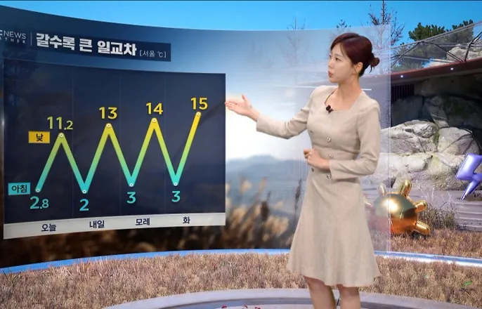 [뉴스데스크]낮부터먼지가옅어지긴했지만마음을놓을수가없는데요.내일오전부턴다시대기가정체하겠고오후부턴서쪽지역을중심으로또다시미세먼지가유입되겠습니다.내일수도권과강원영서,충청과광주,전북의일평균농도‘나쁨수준’,전남과제주도오후부턴‘나쁨’수준을나타내겠고요.앞으로이삼일간은공기질이악화할것으로보여서호흡기관리에유의하셔야겠습니다.기온은갈수록더오르겠습니다.서쪽온풍이유입돼내일서울의낮기온13도,다음주화요일엔15도로4월초순마냥따뜻해지겠는데요.그만큼크게벌어지는일교차는염두에두셔야겠습니다.남쪽의빗줄기는대부분잦아들었고요.내일도우리나라는서쪽에서다가오는고기압의영향을받겠습니다.밤사이중부지방을중심으로안개가짙어지겠고곳곳엔이슬비도예상됩니다.내일낮동안안개가걷히더라도시야가뿌연곳들이많겠습니다.내일아침기온보시면서울2도,대전영하1도로오늘과비슷하거나낮겠고요.낮기온은서울13도,대구가14도까지오르겠습니다.다음주화요일엔남해안에비가,수요일엔중북부지방에비구름이지나겠고요.당분간기온은평년수준을웃돌걸로전망됐습니다.날씨였습니다.MBC뉴스는24시간여러분의제보를기다립니다.▷전화02-784-4000▷이메일[email protected]▷카카오톡@mbc제보김가영캐스터기사원문-https://imnews.imbc.com/replay/2025/nwdesk/article/6693901_36799.htmlCopyright©MBC&iMBC무단전재,재배포및이용(AI학습포함)금지