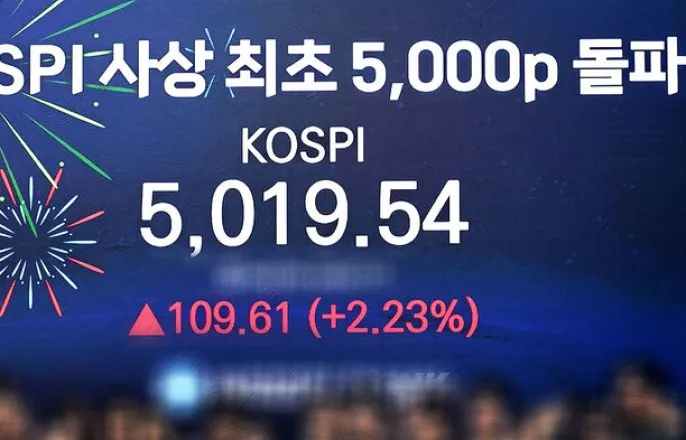 [뉴스데스크]◀앵커▶코스피가오늘장중사상처음으로5천선을돌파했습니다.지난윤석열정부내내단한번도3천선조차넘지못했던지수가,작년6월이재명정부출범이후한달이안돼3천선을돌파하더니,출범약7개월만에꿈과같았던5천선에도닿은겁니다.김민형기자가보도합니다.◀리포트▶거침없이오르던코스피가급기야5천마저돌파했습니다.장이개장하자마자무섭게오르더니장초반5,019를찍으며,장중사상최고치를갈아치웠습니다.5천돌파는코스피지수가설정된지46년만에처음입니다.1980년100으로시작한코스피지수는지난1989년처음1천포인트를넘고,2007년2천을돌파할때까지꼬박27년이걸렸습니다.14년이더지나2021년1월,사상처음으로3천피를넘었지만이후4년간박스권을벗어나지못했습니다.그리고계엄이후2천2백까지폭락했던코스피는작년대선을전후해정치적불확실성이사라지면서비로소상승세로돌아섭니다.6월새정부출범이후증시부양책이잇따라나오자한달도안돼3천을돌파했고,전례없는반도체호황까지겹치면서10월엔4천마저넘어섰습니다.삼성전자는지난1년동안180%,SK하이닉스는235%급등했습니다.[김학균/신영증권리서치센터장]"인공지능투자하는과정에서우리나라반도체업체들이실질적으로큰수혜를보고있고그런기대로…"정부의증시부양책도등돌렸던투자자들을불러모았습니다.환율상승추세에도불구하고외국인은올들어1월에만2조6천억넘게쓸어담았습니다.[이경민/대신증권FICC리서치부부장]"1차,2차,3차모두다상법개정에있어서는한국의저평가요인이었던지배구조이슈와,유통주식수증대를좀바꾸는방향성자체를바꾸는구조적인변화라고…"코스피는장후반밀리면서5천선아래에서마감했지만,이또한역대최고치입니다.MBC뉴스김민형입니다.영상취재:방종혁,박주영,한재훈,강재훈/영상편집:이유승MBC뉴스는24시간여러분의제보를기다립니다.▷전화02-784-4000▷이메일[email protected]▷카카오톡@mbc제보영상취재:방종혁,박주영,한재훈,강재훈/영상편집:이유승김민형기자([email protected])기사원문-https://imnews.imbc.com/replay/2026/nwdesk/article/6795598_37004.htmlCopyright©MBC&iMBC무단전재,재배포및이용(AI학습포함)금지