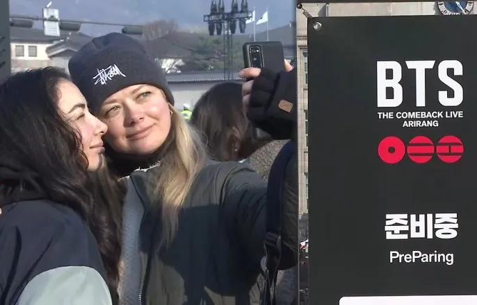 명당사수위해어제밤9시부터'노숙'티켓없는외국인팬,오전7시부터와아침·점심·저녁가방에가득챙기기도21일오전9시50분경서울종로구세종문화회관인근에설치된철제펜스앞에서탕안호(23·베트남)씨와친구가'명당'을사수하기위해친구와어제부터노숙을하고있다./사진=이수기자"어제밤9시부터여기서쭉기다렸어요.티켓이없거든요.좋은자리잡고싶어요."21일오전9시50분경서울종로구세종문화회관인근에설치된철제펜스앞에서탕안호(23·베트남)씨가후드티모자를뒤집어쓴채이같이말했다.그와같이온친구들또한패딩에후드티,장갑,접이식캠핑의자까지준비했다.노숙을위해중무장한것이다.탕안호씨는"인근에숙소를잡지못했다"며"한국에공부하러왔는데BTS를너무좋아해서광화문광장에왔다.경기도포천시에서부터왔다"고했다.오전9시50분경서울종로구에설치된BTS광화문공연장인근으로글로벌아미들이모여들고있다./사진=박수빈기자이날오후8시BTS의광화문컴백공연을앞두고,이른아침부터광화문광장이BTS팬덤'아미(ARMY)'들로차기시작했다.공연표를얻지못한팬들은무대를옆에서볼수있는'명당'을잡기위해이른아침부터움직였다.필리핀에서온키므로나(35)씨와마빈(38)씨는새벽3시에일어나준비했다.경기도화성시에서부터대중교통을타고와야했기때문이다.키므로나씨는"지하철첫차타고1시간20분걸려서왔다"며"언제부터팬이됐는지도모르겠다.노래가너무좋다"고말했다.마빈씨는"우리는콘서트도못가봐서이렇게BTS를직접보는게처음"이라며"너무기대된다.오는데피곤하지도않았다"라고웃으면서이야기했다.이어키므로나씨는"밥보다중요한게사진"이라며"휴대폰배터리가다닳으면사진도못찍는다.그래서보조배터리를넉넉히챙겼다"라며가방에서보조배터리2개를꺼내보여줬다.21일오전10시경독일에서온20대여성루시씨가광화문광장계단위에앉아즉석밥에조미김을싸서먹고있다.그와함께온여동생에밀리,남동생A씨가딸기,식빵,딸기쨈등아침,점심,저녁을해결하기위해싸온음식을보여주고있다./사진=박수빈기자아침,점심,저녁을모두가방에싸온외국인팬도있었다.좋은자리를잡으면이동할수없어,끼니를한자리에서해결하기위해서였다.독일에서온20대여성루시씨는계단위에앉아즉석밥에조미김을싸서먹었다.그와함께온여동생에밀리,남동생A씨또한딸기를먹고있었다.루시씨는"아침,점심,저녁다가져왔다"며"빵,딸기잼,과자,계란김다가져왔다"고소개했다.식량을봉지째구비한가족도있었다.스페인에서온마카레나씨와가족들은흰비닐봉지에빵등음식을가득담아왔다.봉지만2개였다.마카레나씨는"한달동안한국전국을여행할계획이었다"며"여행하러온우리가족한테BTS공연은완전서프라이즈였다.티켓이없어오늘계속기다릴거다.오전8시부터왔다"고설명했다.21일오전10시서울시종로구광화문광장에서스페인에서온마카레나씨와가족들이흰비닐봉지에빵등음식을가득담아왔다./사진=이정우기자오전8시부터오후8시까지대기만12시간이었지만외국인팬들은괜찮다고입을모았다.스웨덴에서온파티마씨는"2014년부터BTS를좋아했다.직접보는건처음이라별로준비도못하고왔다"며"밥챙기는걸까먹었는데괜찮다.추운것도괜찮다.스웨덴에서와서추위에강하다"라고미소지었다.21일오전10시경서울종로구세종문화회관인근프랜차이즈카페에서BTS무대전광판을볼수있는창가자리가만석이됐다./영상=박상경기자팬들중일부는야외에서명당을차지하는것을포기하고무대전광판이잘보이는카페를선택했다.세종문화회관인근프랜차이즈카페가대표적이다.해당카페3층은통창이라무대전광판과공연상황이잘보였다.창가자리는이미만석이었다.엎드려서자는사람도있었다.미국에서온엘리(21)씨와메디슨(22)씨는"오전8시에도착해창가자리를사수하는데성공했다"며"계속기다릴것"이라고했다.대기시간을견디기위해카드게임을챙겨온팬도있었다.우크라이나에서온20대여성B씨는"아침7시부터왔다.명동에숙소를잡아아침일찍부터올수있었다'며"공연하기전까지원카드하면서기다릴생각"이라며카드를만지작거렸다.21일오전10시경서울시종로구세종문화회관인근프랜차이즈카페에서우크라이나에서온20대여성B씨가12시간에이르는대기시간을견디기위해카드게임을챙겨왔다./사진=박상경기자BTS의컴백공연은이날오후8시부터1시간동안광화문광장무대에서무료로진행된다.'BTS컴백라이브:아리랑'(BTSTHECOMEBACKLIVE|ARIRANG)공연으로BTS는앨범'아리랑'에수록된신곡과그간의히트곡을노래할예정이다.무대는넷플릭스를통해190여개국에생중계된다.이날광화문일대에는약26만명이모일전망이다.정식관객수는약2만2000명이지만경찰은광화문광장일대에약26만명이모일것으로추산하고있다.박수빈한경닷컴기자[email protected]©한국경제.무단전재및재배포금지.