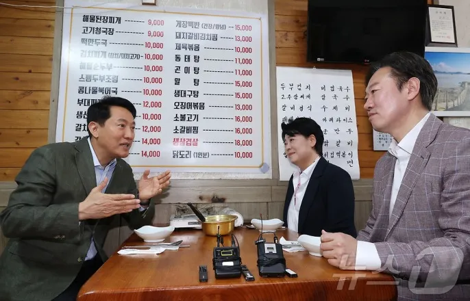 "청년·중년·장년어우러진선대위구성""서울무너지면독재극에달해"'장동혁과공동유세'질문에"선거운동은늘후보자중심"선긋기오세훈국민의힘서울시장후보가19일서울종로구한식당에서서울시장경선을펼친윤희숙전의원,박수민의원과오찬하고있다.2026.4.19ⓒ뉴스1김성진기자(서울=뉴스1)한상희손승환기자=6·3지방선거국민의힘서울시장후보로확정된오세훈서울시장의선거캠프에경선경쟁자였던박수민의원과윤희숙전의원이공동선거대책위원장으로합류한다.오시장은"청년·중년·장년이함께어우러진대통합선대위"구상을밝혔다.오시장은이날서울종로구동행식당에서두사람과오찬회동을한뒤기자들과만나"앞으로50일가까운선거기간동안함께고생해주시기로했다.캠프를어떻게진행할건지의견을나누는시간이었다"며이같이말했다.그는이번선거비전으로'더따뜻하고더건강한삶의질특별시서울'을제시했다.오시장은"지난4년간약자와의동행을가장중요한정책적목표로삼았다"며"동행식당은그대표적인정책"이라고강조했다.동행식당은쪽방주민이하루한끼원하는메뉴를골라식사할수있도록지원하는사업이다.이어"과거배식시스템에서벗어나원하는식당에서원하는메뉴를드리는것"이라며"동네사랑방역할을하면서생의의욕을다시불러일으키는좋은결과를많이냈다.그런의미에서더따뜻하고더건강한삶의질특별시를지향한다는의미에서두분을모시고이식당에서식사했다"고설명했다.박의원은"동행식당은골목경제도활성화되고취약계층이음식을제공받는모범적인사례"라며"오시장이이어져야하는이유에대해동행식당이오늘선명히잘보여줬다"고평가했다.윤전의원도"남은45일선거캠페인동안민심속으로들어가는,당이발전하는방향으로가는캠페인을다하기로마음을모았다"고힘을보탰다.오시장은선대위구상과관련해"혁신선대위는중도확장선대위"라며"선거는중도의바다로나아가서많은유권자의동의와마음을얻는작업"이라고말했다.이어"각계각층의,청년·중년·장년이함께어우러진,시민여러분이동참하는의미에서의대통합선대위를구성하고있다"며"아직까지구체화된단계가아니지만꾸준히많은분들의마음을모으는과정"이라고했다.오시장은현정부를겨냥한메시지도내놨다.그는"이재명정부는폭주기관차라고해도과언이아니다"면서"오만을넘어독재로가고있고,사법부를능멸하고조롱하는행태는민주주의국가에서있을수없는일"이라고비판했다.이어"현정부의오만함과독재에대한견제의의미를이번지방선거의표심에서의미있게표출될수있도록최선의노력을다할필요가있다"며"서울마저무너지면이재명정부의연성독재가극에달할것"이라고강조했다.장동혁국민의힘대표와함께선거운동을할것이냐는물음에는"공천이마무리되면자연스럽게지도부의역할이줄어들면서후보자중심의메시지가전달될것"이라며"선거운동자체는늘후보자중심으로이뤄질수밖에없기때문에자연스럽게그런방향으로흘러가지않을까예상한다"고답했다.장대표와의공동선거운동에사실상선을그은것으로보인다.서울시는이후참고자료를통해"이제는서울을지키기위해실력으로뭉친'원팀체제가시작됐다"며"서울을지켜야대한민국을지킵니다'라는인식을공유하며,혁신과통합의'이기는선대위'신호탄을쏘아올렸다"고밝혔다.오시장도페이스북에서"동행식당에서'삶의질특별시서울,원팀'이출발한다"고밝혔다.이어"윤희숙후보님의날카로운정책통찰력과혁신추진력,그리고박수민후보님의탄탄한행정경험과민간에서다져온내공은보수와대한민국의귀한자산"이라며"앞으로도두분의혜안을늘경청하며힘을모으겠다"고했다[email protected]©뉴스1.Allrightsreserved.무단전재및재배포,AI학습이용금지.