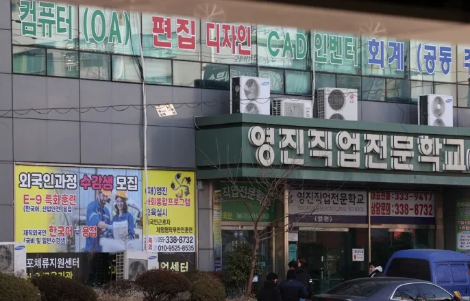 [표지이야기]최근3년인신매매인정외국인57명…기술연수생·계절노동자제도빈틈에양산되는인권착취2026년1월25일오후경남김해시에있는영진직업전문학교앞에도착한외국인들이건물안으로들어가고있다.김해(경남)=신소영기자[email protected]억동(베트남화폐단위).우리돈으로약2800만원인이돈은베트남에서대학졸업신입사원이중견기업에입사해생활비를한푼도안쓰고꼬박4~5년을모아야손에쥘수있는거액이다.한국중견기업신입사원이같은기간약1억5천만원을모으는것과같다.응우옌바오안(27·가명)의보호자는아들에게이돈을건넸다.한국에서용접기술을배워취업하거나베트남에서창업하고싶다는아들의꿈을밀어주기위해서다.팜민칸(25·가명)도더많은돈을벌수있는한국에서일하고싶었다.응우옌과팜은‘빈민(BinhMinh·‘새벽’이란뜻)국제유학센터’(유학원)를찾아갔다.베트남청년들이외국에가서공부하거나일할수있도록연결해주는기관이다.유학원은두사람에게‘D-4-6비자를받아한국에있는직업전문학교에가서1년간교육받으면E-7비자를취득해학교에서소개해주는회사에취업할수있다’고설명했다.D-4-6(우수사설교육기관외국인연수)비자는한국에서기술교육을받을수있는비자다.E-7(특정활동)비자는한국정부가외국인력도입이필요하다고지정한분야(관리자,전문가,사무·서비스·판매·농림어업종사자등93개직종)에서일할수있는비자다.응우옌과팜이겪은‘인신매매’굴레응우옌과팜은그렇게거금을유학원에내고2023년한국땅을밟았다.같은꿈을품고은행대출등을통해유학비를마련해2023~2024년차례로입국한베트남청년유학생만17명이더있었다.하지만그들을기다린건장밋빛미래가아니었다.‘인신매매’의굴레였다.피해유학생들은유학비를낼때부터‘속박’을받았다.그안엔‘이탈보증금’이있었다.학교에서수업을안들으면돌려받을수없는돈이었다.응우옌은1억2천만동(약660만원),팜은5천만동(약270만원)을냈다.이런족쇄를차고피해유학생들이간곳은경남김해에있는영진직업전문학교(영진학교)였다.‘국제교류처장’김아무개씨가유학생들을인솔했다.월~목요일에는용접교육을,금요일에는한국어교육을받았다.그런데한달정도지나자학교가한국어수업을뚝끊었다.“왜안하는지아무설명도없었어요.”(팜)용접교육도부실했다.“강의실에서영상을틀어주고,옆에서선생님이한국어로설명했어요.수업내용을이해하기어려웠어요.선생님이강의한것도며칠뿐이었어요.나중엔우리끼리자율학습을해야했어요.별다른교육없이수업이끝나면기숙사로돌아가는일이반복됐어요.”(응우옌)기술도,한국어도제대로배우지못한채시간만흘렀다.이건‘사기’였다.영진직업전문학교별관내부교실의모습.김해(경남)=신소영기자[email protected]기숙사도엉망이었다.벽면에곰팡이가핀좁은방하나(원룸)에서너명이몸을구겨넣어야했다.바퀴벌레도많았다.“학교에서얇은매트리스를하나씩줬는데,방바닥에매트리스깔고누우면그사이로사람이지나갈수없었어요.”학비와기숙사비,실습비,교재비등으로거금을낸응우옌과팜이겪은피해다.학교는‘통제’를일삼았다.수단은다양했다.먼저‘여권압수’였다.학교는외국인등록증(입국일로부터90일이상체류하려는외국인대상)발급과체류기간연장신청을이유로유학생들여권을가져갔다.유학생들입국일로부터6개월이지난때이뤄진1차체류기간연장은순조로웠다.문제는2차연장때나타났다.다음은2023년6월에입국한응우옌의말이다.“2차연장을신청한다고학교선생님이2024년4월여권을가져갔어요.그런데(체류기간만료일인)6월이다됐는데도연장이안된거예요.나중에알고보니까선생님이7월이돼서야출입국사무소(부산출입국·외국인청김해출장소)에갔대요.결국전미등록체류자가됐고,학교는그해12월이돼서야여권을돌려줬어요.”그러면서학교는돈을요구했다.2023년10월한국에온다른피해자인레반끄엉(31·가명)은“학교에서(2차)비자연장신청에필요하다며학비와기숙사비를추가로내야한다고독촉했다”며“결국520만원을추가납부했는데2024년10월이후로체류연장은되지않았고,어떻게된일인지물을때마다‘걱정말고기다리라’는말만들었다”고말했다.역시‘사기’였다.법무부지침위반한‘강제노동’피해유학생중일부는‘강제노동’도해야했다.응우옌을포함해2023년6월영진학교에입학한유학생9명은그해9월현장실습명목으로전남영암군에있는제조업체에서3~4주를일했다.학교에서200㎞이상떨어진곳에있는회사들이다.체류기간6개월이지나야현장실습이가능하고,현장실습장소와연수기관(여기에서는영진학교)의거리는편도1시간이내또는편도50㎞이내에있는곳으로편성한다는법무부지침을위반한것이다.유학생들은가고싶지않았다.‘아직용접기술을다배우지못했다.지금가서일하면위험하다’고했다.그러자국제교류처장김씨는유학생들이있는카카오톡단체대화방에서“교육과정은김해직업전문학교(영진학교)이사장과국제교류처장인내가결정한다”며“현장교육프로그램을하고싶지않은경우자진출국신청서를작성해서제출해”라고답했다.‘협박’이었다.응우옌은연마기(금속등의표면을깎아내거나절단또는광택을