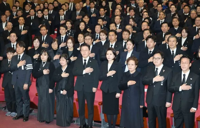 정계인사추도속국회의원회관서영결식"판단할게많은데이제누구에게물어보나"李대통령,운구따르며연신눈물훔쳐이재명대통령과김혜경여사가31일서울여의도국회의원회관에서열린고이해찬전국무총리(민주평화통일자문회의수석부의장)영결식에서이전총리를배웅하고있다.뉴시스고(故)이해찬전국무총리의영결식이31일오전국회의원회관에서엄수됐다.이재명대통령을포함한정계인사들이그의마지막길을배웅하며민주주의역사에헌신한고인을기렸다.영결식이열린의원회관대회의실맨앞줄에는이재명대통령과김혜경여사,김민석국무총리,우원식국회의장,노무현전대통령배우자권양숙여사가유족과함께자리했다.더불어민주당에서는정청래대표,한병도원내대표,조승래사무총장,박수현수석대변인과최고위원등지도부와박지원·김주영·안도걸·문정복·한준호의원등이참석했다.야당에선국민의힘소속인주호영국회부의장,조국혁신당조국대표,진보당김재연상임대표,사회민주당한창민대표,기본소득당용혜인대표가함께자리했다.영결식에선먼저이전총리의장례위원회상임집행위원장을맡은조정식대통령실정무특보가"한평생철저한공인의자세로일관하며진실한마음,성실한자세,절실한심정으로책임을다한민주주의거목이자한시대를대표하는정치인"이라며고인의약력을보고했다.이어김총리가조사를하고우의장,정대표,백낙청서울대명예교수,한명숙전국무총리가각각추도사를전했다.김총리는추도사에서"민주주의도대한민국도고인에게빚졌다"며"고문과투옥에도민주주의를지켰고민주세력의유능함을보여후배들의정치진출에길을냈다"고말했다."은인","역대최고의공직자","롤모델"이라고고인을지칭한그는"아직여쭤볼게많은데,판단할게너무많은데,흔들림도여전한데이제누구에게여쭤보고누구에게판단을구하고누구에게의지해야하나"라며고인을추모했다.이재명대통령내외,권양숙여사,우원식국회의장,김민석국무총리등참석자들이31일서울여의도국회의원회관에서열린이해찬전국무총리영결식에서국민의례를하고있다.연합뉴스우의장은"이해찬이라는이름은대한민국민주주의역사그자체였다"며"1982년춘천교도소에서함께수감생활을하던때몸은가두어도민주주의는가둘수없다는당신의말을앞장서보여주셨다"고회고했다.그는"선배님은늘불의앞에준엄했고시대의변화에치열했고국민앞에선따뜻했다"며"언제나공적인일에는몸을살피지않고앞장서며'선공후사'를실천하던일생에서우리는공직자의소명의식과책임감이뭔지깊이깨달았다"고전했다.정대표도추도사에서"탁월한지도자","민주당의정신적지주","당내최고의전략가"라고평가했다.그러면서"올바른정치의표상이셨던이전총리님과동시대에함께했다는것이자랑스럽다.참엄하시지만따뜻했던분,민주당의거목,이전총리님을오래오래기억하겠다"고울먹였다.이대통령역시침통한표정을감추지못했다.생전업적을담은추도영상속고인을바라보며눈시울을붉힌이대통령은,영결식이끝난뒤운구행렬을따라걸으면서손수건으로연신눈물을찍어냈다.이별을알리는3발의조총발사와함께고인을태운운구차가국회를떠났다.영결식에앞서서울대병원장례식장에서발인이엄수됐고,민주평화통일자문회의사무실과더불어민주당당사에서는노제가이뤄졌다.고인은서초동서울추모공원에서화장된뒤세종시은하수공원에안장된다.조영빈기자[email protected]©한국일보.무단전재및재배포금지.