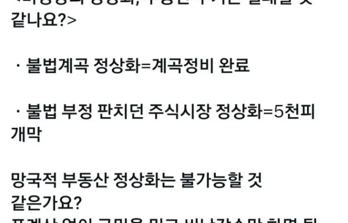 "망국적부동산정상화불가능할것같으냐…마지막기회""표계산없이국민믿고비난감수"…투기세력에최후통첩"종묘앞고층개발은되고,태릉옆주택공급은안되나"…서울시저격도[서울=뉴시스]고범준기자=이재명대통령이29일청와대에서열린수석보좌관회의에서발언하고있다[email protected][서울=뉴시스]김지은기자=이재명대통령이31일"부동산정상화는(코스피)5천피,계곡정비보다훨씬쉽고중요한일"이라며"기회가있을때잡으시기바란다.이번이마지막기회였음을곧알게될것"이라고밝혔다.부동산투기세력에최후통첩을날리며수도권집값안정에대한강한의지를드러낸것으로풀이된다.이대통령은이날오전자신의엑스(X·옛트위터)에"'결국급매나왔네"집주인들백기들었나…서울아파트값급브레이크'라는제목의언론보도를공유하며이같은메시지를남겼다.해당기사는정부의부동산세제개편검토언급이후서울아파트값이소폭하락했다는내용이었다.거래는줄고일부매도물량이등장하면서가격흐름이주춤해졌다는것이다.이대통령은'비정상의정상화,부동산투기는실패할것같나요?'라는제목의게시글에서'불법계곡정상화=계곡정비완료','불법부정판치던주식시장정상화=5천피개막'이라는도식을올렸다.그러면서"망국적부동산정상화는불가능할것같으냐"며"표계산없이국민을믿고비난감수만하면될일"이라고적었다.계곡내불법시설정비는이대통령이경기지사시절이뤄낸성과다.'코스피5000달성'은지난대선공약으로이대통령은이를실행해냈다.두사안과마찬가지로흔들림없는추진력으로부동산시장역시잡겠다는의지를피력한것으로관측된다.이대통령은최근부동산관련메시지를거듭내놓고있다.지난23일SNS를통해오는5월9일만료를앞둔다주택자양도세중과면제제도에대해"(기간)연장은전혀고려하지않고있다"고밝혔다.주말인25일에는부동산과관련한게시글만4차례나게재하며"비정상적인버티기가이익이돼서는안된다"고했다.부동산시장에강력한경고메시지를발신하고있는셈이다.지난27일국무회의에서는"부동산에비정상적으로집중된자원배분왜곡을반드시바로잡아야한다"며"당장의고통과저항이있더라도적절한대책을안정적으로추진해야한다"고밝혔다.특히다주택자양도세중과유예를연장하지않기로한것을재확인하며"잔파도에휩쓸리거나일희일비하지말고꿋꿋하게임해야한다"고도했다.정부는이르면7월세제개편안에보유세와거래세를포함한부동산세제합리화방안을담는방안을검토하고있다.강기룡재정경제부차관보는지난29일정부서울청사에서열린브리핑에서"보유세와거래세를포함한합리적인조세개편방안을차근차근준비하고있다"고밝혔다.재산세와종합부동산세등보유세체계와취득세·양도소득세등거래세전반에대한개편이논의되고있다는것이다.장기보유특별공제제도도손질을예고했다.이대통령은"다주택은물론,비거주1주택이라도주거목적이아닌투자·투기용이라면장기간보유했다는이유로세금을깎아주는건이상해보인다"며"장특공제제도가매물을막고투기를권장하는꼴"이라고지적했다.이대통령은이날X계정에2건의글을더올렸다.집권2년차를맞은만큼국정운영에속도를내기위해소셜미디어(SNS)를통한직접소통이잦아지는모습이다.하나는최근발표한부동산공급대책과관련한내용이다.정부는용산·과천·성남등수도권46곳에6만채규모의주택을공급하는대책을발표했는데일부는인허가권을진지자체와갈등을빚고있다.이대통령은서울시와정부가노원구태릉골프장부지택지개발로입장이뒤바뀌었다는취지의기사를소개하며"종묘앞고층개발은되고,태릉옆주택공급은안되나"라고했다.이대통령은'종묘앞고층개발은안되고,태릉옆주택공급은되나'라는제목의기사를공유하며이같이말했다.게시글의제목은'어떤차이가있을까요?똑같은사안에정반대의입장'이었다.기사는종묘경관을이유로세운4구역개발에제동을건정부가주택공급을위해태릉개발에나서며문화유산훼손논란에휘말렸다는내용이다.이대통령은오히려종묘앞고층빌딩개발은추진하면서태릉옆주택공급에는반대하는서울시야말로이중적일수있다는점을꼬집은것으로풀이된다.이대통령은아울러미국에서는주가조작등부정행위신고자에대한포상액이한국보다훨씬크다는내용의기사를게시하며"과감한신고포상제도,우리도확실히도입해야겠죠?"라고남기기도했다.☞공감언론뉴시스[email protected]©뉴시스.무단전재및재배포금지.
