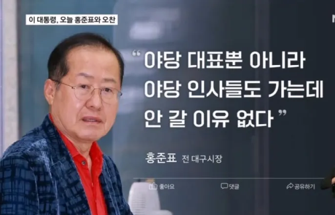 【앵커멘트】이재명대통령이오늘(17일)홍준표전대구시장과청와대에서비공개오찬을합니다.홍전시장은"무당적자인내가안갈이유가없다"며수락사실을공개했습니다.표선우기자가보도합니다.【기자】이재명대통령초청으로오늘(17일)홍준표전대구시장이청와대를방문합니다.이대통령과비공개오찬이예정될걸로알려졌는데,청와대는말을아꼈습니다.대신당사자인홍전시장이SNS에"보름전홍수석연락이왔길래비공개오찬이라면괜찮다고했다"며청와대방문을인정했습니다.청와대에서연락한인물은홍익표정무수석을지칭한걸로보입니다.홍전시장은또"야당대표뿐만아니라야당인사들도가는데안갈이유가없다"며수락배경을설명했습니다.지난해국민의힘대선후보경선에서탈락한뒤탈당한홍전시장은사실상당적을떠나독자행보중입니다.최근에는"당을떠나역량있는행정가를뽑아야한다"며김부겸더불어민주당대구시장후보를공개지지하기도했습니다.이대통령과홍전시장은그동안정치적대척점에있으면서도일부현안에는공감대를보이기도했습니다.▶인터뷰:홍준표/당시대구시장(2023년5월)-"윤석열정권이대부분정치를잘모르는사람들이대통령실에있어요.그렇지않습니까?"▶인터뷰:이재명/당시더불어민주당대표(2023년5월)-"국민의힘원로시니까중앙당에도조금그런말씀한번씩해주면좋을것같아요."▶스탠딩:표선우/기자-"그동안보수논객을청와대에초청해오찬을함께하며조언을들었던이대통령이오늘만남에서는어떤대화를이어갈지관심입니다."MBN뉴스표선우입니다.[[email protected]]영상취재:이우진기자,문진웅기자영상편집:박찬규그래픽:이새봄Copyright©MBN.무단전재,재배포및AI학습이용금지.