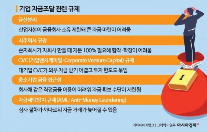 첨단산업경쟁가속…AI투자규모커지는데국내에선금산분리·자사주·중복상장등규제SK하이닉스가미국주식예탁증서(ADR·AmericanDepositaryReceipt)상장검토에나서면서국내기업의자금조달환경이다시도마위에올랐다.인공지능(AI)·반도체등첨단산업투자규모가커지는상황에서금산분리와자사주소각의무화,중복상장규제등이겹치며기업들이국내에서활용할수있는자본수단이좁아졌다는지적이제기된다.11일산업·금융투자업계에따르면SK하이닉스는전날조회공시답변을통해"기업가치제고를위한다양한방안을검토중이나현재까지확정된사항은없다"고밝혔다.이어"추후구체적인내용이확정되는시점또는1개월이내에재공시하겠다"고덧붙였다.약1740만주의자사주가활용될수있다는관측이나왔으나회사는검토단계라는점을강조했다.국내저평가문제와해외투자자기반확대를동시에고려한조치라는분석도나오고있다.이번조회공시는앞서SK하이닉스가자사주를미국증시에주식예탁증서로상장하는방안을추진한다는보도가나온데따른것이다.예탁증서(DR)는기업주식을해외시장에서유통하기위해발행하는대체증권이다.기업이원주식을국내보관기관에맡기면이를담보로현지은행등해외예탁기관이예탁증서를발행하고해외시장에서거래될수있도록한다.미국에서발행되는경우ADR이라고부른다.업계에선미국시장에서ADR이거래되면SK하이닉스가마이크론과같은경쟁사수준으로기업가치를재평가받을수있다고보고있다.산업계에선SK하이닉스의ADR상장검토를단일기업의선택이아니라국내자본시장구조의한계를드러내는상징적사건으로평가한다.국내에서계열사상장이제한되고자사주활용도제약받는동안미국시장은적극적으로첨단산업기업유치에나서고있기때문이다.기업들은국내보다미국에서더높은가치로평가받을수있다는기대도내놓는다.무엇보다미국은AI·반도체산업에대한투자자관심이높아ADR발행이기업가치제고로이어질가능성이있다.첨단산업경쟁이가속화한상황에서기업들이자본시장에서활용할수있는선택지를넓혀주는제도정비가필요하다는목소리가높아지고있는배경이다.연합뉴스SK하이닉스는기업단독으로대규모투자에필요한자금과인프라확보가어렵다며제도개선필요성을정부에전달했다.곽노정SK하이닉스대표는대통령실보고회에서"대규모자금확보에어려움이있어규제완화가필요하다"며초대형투자가단일기업에집중되는구조의한계를지적했다.SK하이닉스는용인반도체클러스터에약600조원을단계적으로투입해팹규모를확대하고첨단장비를도입할계획이며청주에도향후4년간42조원투자를예고했다.이같은흐름은지주사규제와금산분리규제에막힌기업들의자본유연성이크게제한된현실과도맞닿아있다.관계부처는지주사규제와금산분리원칙일부를조정하는방안을이르면이번주발표할것으로알려졌다.전략산업투자규모가커진상황에서기존규제환경으로는대규모사업확장에필요한자금공급이어렵다는판단이작용했다는설명이다.정부는지주회사의손자회사가국내증손회사를두려면지분을100%보유해야하는현행규정을'50%이상'으로완화하는방안을검토중이다.100%규정은총수일가의과도한지배력확대를견제하는장치지만첨단산업투자에선신규자회사설립비용이과도해사업확장에걸림돌이됐다.SK하이닉스·LG에너지솔루션등이이규정의영향을받는대표사례다.일반지주회사의금융리스회사보유를허용하는방안도논의되고있다.금산분리원칙이적용되는현행체계에선일반지주회사가금융·보험업을영위할수없지만금융리스가허용되면설비·시설을임대하는방식으로초기비용을줄일수있다.특수목적법인(SPC)을활용해투자자를유치하는방식도가능해져첨단산업자금조달방식이확대될것으로전망된다.한편국내규제가투자속도를따라가지못한다는지적은꾸준히제기됐다.글로벌기술기업들의투자규모는국내기업들이감당하기어려울수준으로커지고있기때문이다.트렌드포스는구글·아마존·메타·마이크로소프트등주요AI기업의내년도자본지출을5200억달러(약764조원)로전망했다.반도체팹건설비용도한기당100조원을넘길것으로관측된다.그런데도국내에선자사주소각의무화논의가이어지고금산분리·중복상장규제등으로전략적자본활용수단이제약된다는비판이제기된다.대한상공회의소조사에서기업62.5%가자사주소각의무화에반대했고79.8%는신규취득자사주처분공정화를대안으로제시했다.한대기업관계자는"현행제도에ㅅㄴ수십조원대투자를반복해야하는첨단산업시대를감당하기어렵다"고했다.또다른관계자는"성장할수록규제가커지는구조"라고평가했다.장희준기자[email protected]©아시아경제.무단전재및재배포금지.