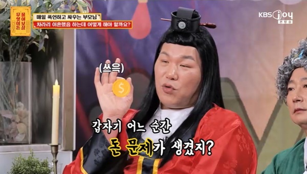 KBSJOY‘무엇이든물어보살’KBSJOY‘무엇이든물어보살’[뉴스엔유경상기자]서장훈이부모불화때문에찾아온고민녀의사정을정확히꿰뚫었다.1월19일방송된KBSJOY‘무엇이든물어보살’에서는26살고민녀가“매일폭언하고싸우는부모님차라리이혼했음하는데어떻게해야할까요?”조언을구했다.고민녀는“부모님이돈때문에폭언하고죽일듯이싸우는데이혼을안한다.왜이혼안하고같이사는지이해가안된다.제가어떻게두분을설득해야할지”라며초등학교5학년때까지평범한가정이었다고말했다.서장훈이“초등학교6학년때부터돈문제가생겼지?”라고묻자고민녀는“맞아요”라며놀랐고,서장훈은옛날말로안봐도비디오라며“돈때문에문제가생긴다”고말했다.고민녀의부모님은모두공무원으로모친이외조부모님의건강문제로돈을보내고빚까지2억정도지면서갈등이깊어졌다고.고민녀는“아빠가어릴때부터가난과빚에안좋은기억이있는데난널용서할수없어.두분이금전적인문제로싸우는건이해할수있는데그스트레스를아빠가저와여동생들에게폭언으로푸셨다”고토로했다.고민녀는“저는첫째라서네가잘돼야한다,너는그것도못하냐,이기적이냐.둘째가끼가많고예쁘게생겨서연습생생활을3년했다.너는몸팔면서할거냐,비하발언을많이했다.둘째가자해시도도2번했는데내가뭐를했다고네가그러냐,널먹여주고키워줬는데,너는내딸아니다.부모님과갈등이저와둘째동생에게정신적으로많이왔다”고토로했다.막내여동생은고등학생으로아직부모님과함께살고있는상태.고민녀는“때리는거빼고다한다”고부친의폭언을걱정했고,이후부친이대장암3기진단을받아모친이지극정성으로살려놓고빚을정리해상황이나아지는듯보였지만외조부모님의건강악화로상황이반복됐다고말해안타까움을더했다.(사진=KBSJOY‘무엇이든물어보살’캡처)뉴스엔유경상yooks@기사제보및보도자료[email protected]ⓒ뉴스엔.무단전재&재배포금지Copyright©뉴스엔.무단전재및재배포금지.