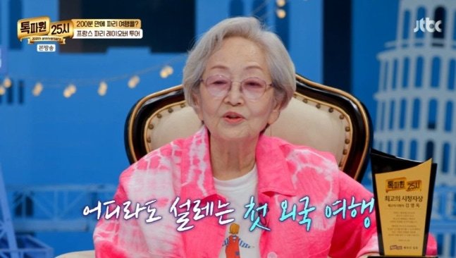 [스포츠동아이정연기자]배우김영옥이49세에처음떠난해외여행추억을꺼내며프랑스에서느낀설렘을전했다.9일밤방송된JTBC‘톡파원25시’200회특집에는김영옥이게스트로출연했다.평소‘톡파원25시’애청자라고밝힌김영옥은프로그램을향한애정도드러냈다.그는“집에있으면꼭챙겨볼정도로애정이깊다.대리만족으로최고다”라며“톡파원들이전세계곳곳을잘소개해준다.우리에게는기가막힌선물”이라고말했다.이어“나와같이늙어가는소중한프로그램이니잘해야한다”고덧붙여웃음을안겼다.출연자들도입을모아감사인사를전했다.이날김영옥은첫해외여행에대한기억도털어놨다.그는“평생바쁘게일하면서쉰이다될때까지해외여행을못가봤다”고말했다.이어“49세에처음프랑스를갔는데그게내첫해외여행이었다”며“프랑스에가서좋았다기보다첫여행의설렘이있었다.21일간장기여행을했다”고회상했다.이정연기자[email protected]©스포츠동아.무단전재및재배포금지.
