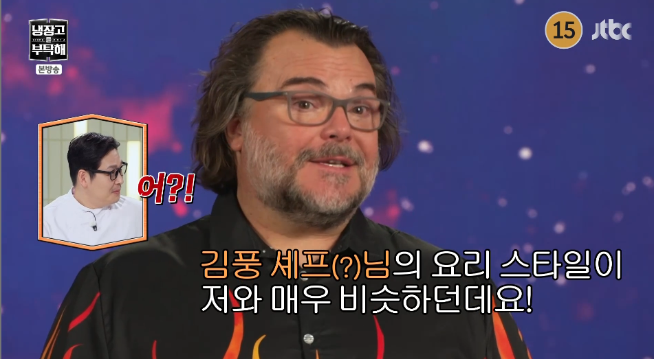 [스타뉴스|노미경기자]/사진=JTBC'냉장고를부탁해'할리우드스타잭블랙이'냉장고를부탁해'에깜짝등장해김풍셰프를극찬했다.19일방송된JTBC예능프로그램'냉장고를부탁해'에서는할리우드배우잭블랙이한국제작진앞으로보낸특별한영상메시지가공개돼셰프들을놀라게했다./사진=JTBC'냉장고를부탁해'영상속잭블랙은환한미소와함께"김풍셰프의요리스타일이나와매우비슷하다"고말문을열였다.이어"김풍의요리는창의적이고대담하며에너지가넘친다"며사람들이가진흔한재료로상상치도못한요리를만들어내는것이야말로훌륭한요리의본질"이라며극찬했다.예상치못한찬사에셰프들은놀라움을감추지못했다."형이저정도야?","우리가아는그잭블랙맞냐"며재차확인했고,급기야"AI아니냐"는반응까지나와웃음을자아냈다.이에김풍은즉석에서화답했다.그는"내친김에'냉장고를부탁해'에한번나와달라"며영상편지를보내눈길을끌었다.노미경기자[email protected]©스타뉴스&starnewskorea.com,무단전재및재배포금지