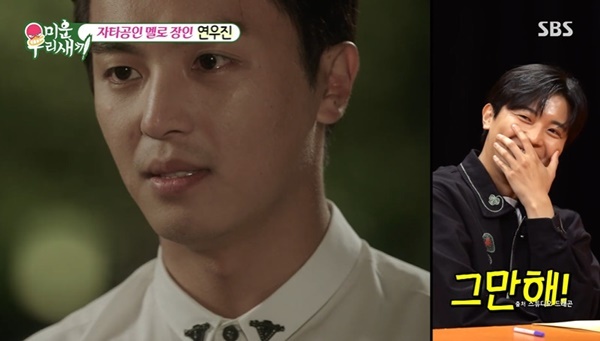 SBS'미운우리새끼'(엑스포츠뉴스김지영기자)배우연우진이어머니와함께살며연애프로그램을시청할때의고충을털어놨다.19일방송된SBS'미운우리새끼'에는스페셜MC로연우진이출연했다.이날서장훈은연우진을'멜로장인'이라고소개하며관련자료화면을공개했다.이에연우진은자신의모습을부끄러워하며"그만해"라고외쳤다.이에신동엽은"여자만만나면계속좋다고한다"고장난을더했고,허경환의어머니역시"여자들을다울리네"라고거들어웃음을자아냈다.SBS'미운우리새끼'이어서장훈이"정작어머니는낯설어하신다고들었다"고하자,연우진은"제가드라마나영화에서멋있게나오니까,어머니가귤을드시다가저에게던지셨다"고밝혀웃음을안겼다.이후연우진은김희철,허경환의어머니앞에서멜로드라마명대사를재연하며분위기를띄웠다.SBS'미운우리새끼'또한43세에어머니와함께사는이른바'캥거루족'이라는이야기가나오자,서장훈은"어머니와'나는솔로'를볼때난감하다고들었다"고언급했다.이에연우진은"동병상련인분들이많이나와서관심있게보는데,웃으면서보다가도어머니의따가운시선이느껴진다"고말했다.이어"그러면어머니가'네가지금웃을때냐'고하신다"고덧붙이며공감을자아냈다.사진=SBS'미운우리새끼'김지영기자[email protected]©엑스포츠뉴스.무단전재및재배포금지.