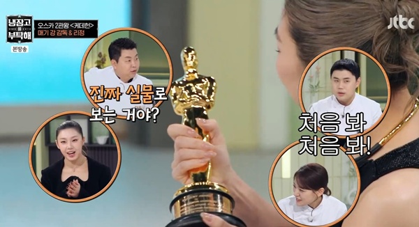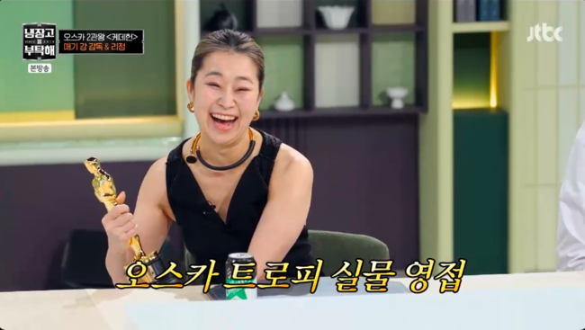 방송시청후작성된리뷰기사입니다.[OSEN=박하영기자]‘냉장고를부탁해’매기강감독이오스카트로피를최초공개했다.19일방송된JTBC‘냉장고를부탁해’(이하‘냉부해’)에서는‘케이팝데몬헌터스’매기강감독과댄서리정이출연했다.이날김성주는“먼저오스카2관왕축하드린다.오스카수상자를냉부에서매기강감독님이오스카트로피를가지고오셨다고한다”라고말했다.오스카트로피를공개한매기강은“받은상중에제일멋있는것같다.그리고진짜무겁다”라고전해눈길을끌었다.모든셰프들이차례로트로피를들어보고인증샷을남긴가운데안정환은“그런상을저런가방에갖고다니냐”라고놀랐다.이에매기강은“다른상은케이스를주는데이거는케이스안준다”고답했다.김성주와안정환은자신의사이에트로피를두고진행하기로했다.쿨하게매기강이허락하자두사람은오스카최고의프로그램상으로수상소감을밝혀웃음을자아냈다./mint1023/@osen.co.kr[사진]‘냉장고를부탁해’방송화면캡처Copyright©OSEN.무단전재및재배포금지.