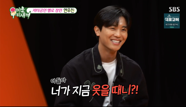 방송시청후작성된리뷰기사입니다.[OSEN=박근희기자]'미운우리새끼’배우연우진이어머니와함께사는캥거루족의유쾌한일상을공개했다.19일전파를탄SBS'미운우리새끼'(이하'미우새')에서는'믿고보는멜로장인'배우연우진이등장해솔직하고거침없는입담을펼쳤다.올해43살인연우진은독립했다가다시어머니와합가해생활중이다.그는집에서어머니와연애예능‘나는솔로’를시청할때난감한상황이벌어진다며,“저도모르게따가운시선이느껴지더라.너무웃다가보면‘너가지금웃을때니?’”라고어머니의뼈있는일침을전해웃음을자아냈다.어머니의남다른아들잡는매력은여기서끝이아니었다.‘멜로장인’이라는별명에대해연우진은“드라마,영화에서폼잡고그러니까먹던귤을저에게”라며어머니가낯설어하며귤을던지는포즈를취해현장을폭소케했다.한편,연우진은자신의이상형으로‘주파수가맞는여자’라며“목소리톤이좀맞았으면좋겠다.저보다높거나말이많으면에너지가힘들더라”라며차분한스타일의이성을선호한다고솔직하게밝혔다./[email protected][사진]‘미운우리새끼'방송화면캡쳐Copyright©OSEN.무단전재및재배포금지.