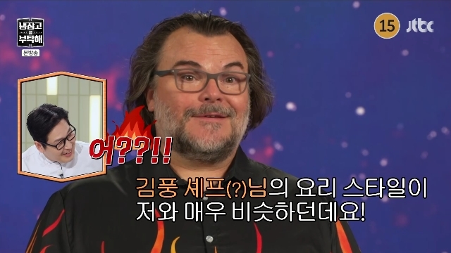 JTBC‘냉장고를부탁해since2014’캡처JTBC‘냉장고를부탁해since2014’캡처[뉴스엔서유나기자]작가김풍이할리우드배우잭블랙에게샤라웃받았다.4월19일방송된JTBC예능'냉장고를부탁해since2014'(이하'냉부')67회에는할리우드배우잭블랙이김풍을샤라웃했다.이날김성주는'냉부'가글로벌인기를얻고있다며"엄청난할리우드스타가'냉부'앞으로영상편지를보냈다"고전했다.손종원은"나탈리포트만아닌가"라며'냉부'팬으로알려진나탈리포트만을짐작했지만,등장한인물은뜻밖에도잭블랙이었다.잭블랙은"김풍셰프님이하시는요리가저랑매우비슷하다.창의적이고대담하고에너지넘친다.그게훌륭한요리의본질이다"라고칭찬했고윤남노는"형이저정도냐"며놀라워했다.다른셰프들은AI설을제기했다.최현석은"창의적이고대담한건제가추구하는요리인데왜김풍에게(보내신거냐)"고불평했다.이에다른셰프들은"번역이되면서잘못됐네"라고김풍을몰아갔다.김풍은영어로답장을보내라는말에"하이잭블랙.아임김풍.땡큐쏘머치.굿.아임유어빅팬"이라고메시지를보냈다.곧언어의벽을마주한김풍은"한번나오세요'냉부'에.제가,아니셰프님들이맛있는요리해드릴테니한번오시라"라고한국말로초대했다.뉴스엔서유나stranger77@기사제보및보도자료[email protected]ⓒ뉴스엔.무단전재&재배포금지Copyright©뉴스엔.무단전재및재배포금지.