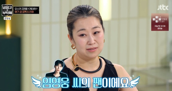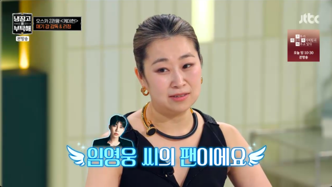 방송시청후작성된리뷰기사입니다.[OSEN=박하영기자]‘냉장고를부탁해’매기강이‘케데헌’속편제작에대한힌트(?)를전했다.19일방송된JTBC‘냉장고를부탁해’(이하‘냉부해’)에서는‘케이팝데몬헌터스’매기강감독과댄서리정이출연했다.이날김성주는“케이팝데몬헌터스’속편이제작된다고한다”라며축하의박수를보냈다.매기강은“‘케데헌’만들면서너무힘들었다.2편은그것보다더잘해야하지않나.액션과드라마는더커야하지않나.조금은긴장되는데잘해보겠다”라고포부를밝혔다.그러자김성주는“제가알고있는거말해보겠다.‘케데헌2’에넣고싶은장르로토트를이야기했다”고말해이목을끌었다.매기강은“저희엄마가임영웅씨팬이다.트로트좀넣어주면안되냐고하시더라.근데아직은모른다.스토리에어울리면넣을수있지않을까”라고해기대감을모았다./mint1023/@osen.co.kr[사진]‘냉장고를부탁해’방송화면캡처Copyright©OSEN.무단전재및재배포금지.