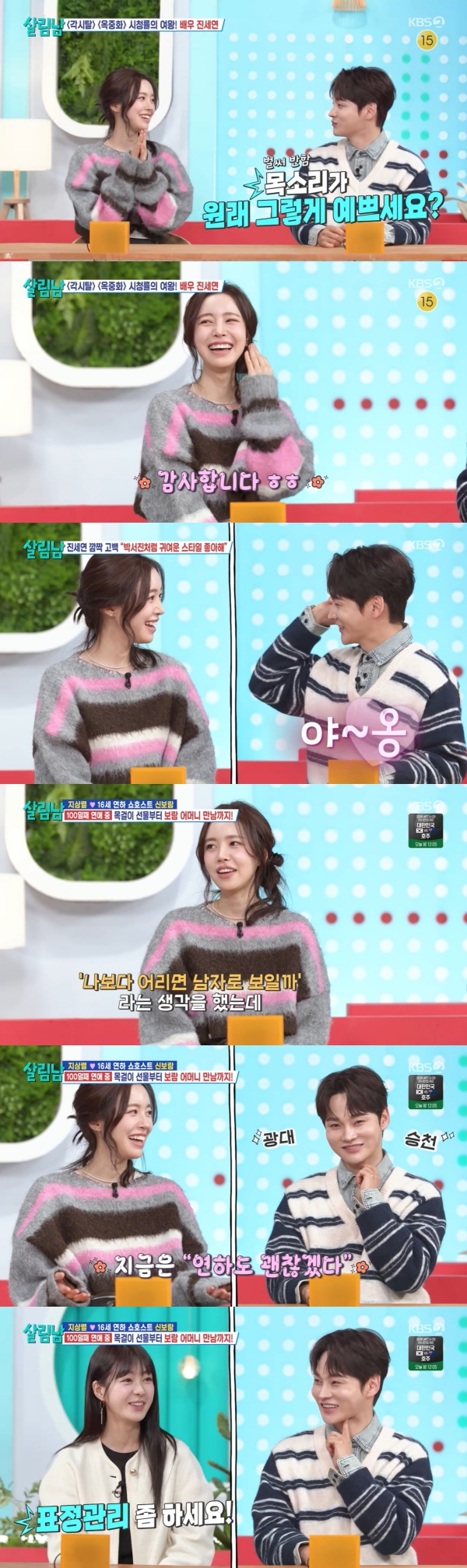 사진=KBS2[스포츠투데이김태형기자]가수박서진이배우진세연을향해플러팅을했다.17일방송된KBS2'살림하는남자들시즌2'(이하'살림남')에는지상렬과공개열애중인신보람이출연했다.이날지상렬은걱정이있는듯한숨을쉬며"만약에딸이16살나이차이가나는사윗감데리고오면괜찮겠냐"고최양락에게물었다.이를본은지원은"상렬이형마음이뭔지안다"며공감했다.그역시9살연하와재혼했기에잘알고있는마음이었다.스페셜MC로출연한진세연은"나이차이어디까지가능하냐"는질문에"나보다어리면남자로보일까란생각을했는데,제나이가점점드니까연하도괜찮겠다는생각을하고있다"고답했다.그말에한살연하인박서진의광대가승천했다.이요원은박서진에게"표정관리좀하세요"라고말해웃음을안겼다.그런가하면박서진은진세연의목소리를듣고"목소리가원래그렇게예쁘시냐.옥구슬이여러개굴러가는것같다"고플러팅을시전했다.진세연은이상형을묻는질문에"서진씨를보니귀여운스타일도좋을것같다"며미소를지었다.이에박서진이"야옹"이라며애교를부려현장을초토화시켰다.[스포츠투데이김태형기자[email protected]]Copyright©스포츠투데이.무단전재및재배포금지.
