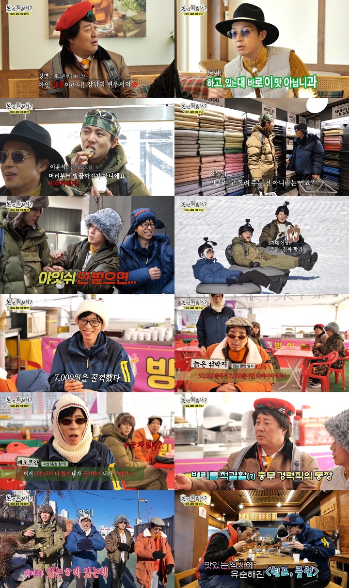"못믿겠다"iMBC연예뉴스사진'놀면뭐하니?'유재석이'쉼표,클럽'공금7천원을꿀꺽한의혹이불거졌지만,결국회원들을만족시키며2차정모를마무리했다.17일방송된MBC예능프로그램'놀면뭐하니?'(연출김진용이주원안지선방성수박은진/작가노민선)는'쉼표,클럽'겨울정모편으로꾸며졌다.동호회회장유재석은정준하,하하,허경환,주우재회원들을데리고,5만원에음식,쇼핑,액티비티모두알차게즐길수있는겨울나들이를떠났다.이날방송의수도권가구시청률은4.7%로지난주에이어토요일예능1위를차지했다.미디어소비환경변화를반영한채널경쟁력핵심지표2054시청률은3.0%로,역시토요일예능1위를기록했다.최고의1분은우동한그릇을먹은뒤쿨하게작별을고하는'쉼표,클럽'회원들의귀가장면으로,분당최고시청률이5.5%까지올랐다.(닐슨코리아수도권기준)지난가을이후다시만난'쉼표,클럽'회원들은서로닉네임을변경해주며정모를시작했다.유재석은'폐오르간',하하는'늙은섞박지',주우재는'이윤석',허경환은'잔땀'으로결정됐다.신입회원으로합류한정준하는"나강변.강남역변우석이다"라며닉네임과전혀다른비주얼로현장을술렁이게했다.유재석은그의비범한머리사이즈를보고는"대가리어때요?"라고제안해웃음을안겼다.그가운데허경환은웃겨야한다는부담감에자신의토크차례가올때마다긴장해인중에잔땀이찬모습을보였다.'학교어디나왔냐'는질문에회원들은'1분1초','김상중'등애드리브를쏟아냈고,허경환은"하'고'있는'대',바로이맛아닙니'과'"라고받아쳤다.'거기서뭘배우냐'고묻자,허경환은"이자~뿌쓰요(잊어버렸어요)"라고자신의유행어로도배를하며위기를넘겼고,유재석은웃음참기에실패했다.이어본격적인겨울나들이에나선회원들은유재석이회비5만원을걷어놓고또무료코스만가는건아닐지의심을거두지않았다.유재석은겨울간식잉어빵으로회원들의배를채운뒤,쇼핑센터로데려갔다.모두가만족하는분위기속주우재는사사건건트집을잡으며유재석과부딪혔다.유재석이"잉어빵머리부터발끝까지팥이꽉찼다"고강조하자,주우재는"발이아니라꼬리"라고정정해유재석의속을뒤집었다.또쇼핑센터에서는꿋꿋하게안쓴돈을정산해달라고투덜댔다.평화주의자허경환은만물상가방에서'휴대용화해'를꺼내두사람의다툼을말리려했지만반응은싸늘했다.서러워진허경환은"내가이거하나하려고무거운가방들고다녔는데!이거를안받아줘?"라고울분을터뜨렸다.싸움으로어색해진공기속겨울액티비티를즐길수있는무료눈썰매장에도착했다.공짜썰매의위력에시큰둥했던주우재도신이났고,회원들은금세화목해졌다.그러나중간정산을하던중,유재석의공금횡령(?)의혹이터지며다시분위기가급속도로얼어붙었다.쇼핑센터에서유재석이2만원이아닌2만7천원을쓰고회원들에게숨긴채꿀꺽했던것.내내구박을받았던주우재는의기양양해졌고,당황한유재석은"지갑에공금과사비를함께넣어서몰랐다.말하려고했는데깜빡한거다"라고해명했다.하하는"못믿겠다"면서회장자격논란에불을붙였고,뒷담화를듣던유재석은물리치료로하하를제압해웃음을자아냈다.결국과거'정총무'로활약했던정준하로총무가교체되며,사건이일단락됐다.마지막코스로회원들은고물가시대최고가성비를자랑하는식당에서뜨끈한우동,짜장면한그릇을먹었다.회원들은폭풍흡입을하며만족했고,유재석은귀가는셀프라며쿨하게작별을고했다.다툼과화해를반복했던'쉼표,클럽'회원들이3차정모로다시만나게될지관심을집중시켰다.한편,다음방송예고편에는제주도에사는최홍만을만나러간멤버들이그의소원을들어주는모습이담기며기대감을높였다.MBC'놀면뭐하니?'는매주토요일오후6시30분방송된다.iMBC연예백아영|사진출처MBCCopyright©MBC연예.무단전재및재배포,AI학습금지.