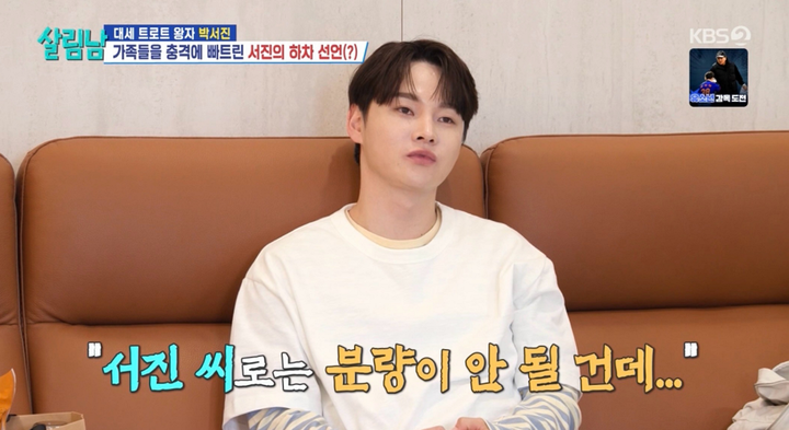박서진,효정소환프로젝트성공(MHN김소영기자)박서진이'살림남'을위해자존심을내려놨다.지난18일방송된KBS2TV'살림하는남자들시즌2'(이하'살림남')에서는동생효정을다시인천으로데려오기위한박서진의고군분투가그려지며유쾌한웃음을안겼다.이날방송은비장한표정으로삼천포를향하는박서진의모습으로시작되며궁금증을자아냈다.효정의부재로인해'살림남'분량위기를느낀그가직접동생을데려오기위해나선것.하지만삼천포에서부모님의보살핌속에여유로운시간을보내고있던효정은쉽게마음을열지않았다.간식공세도통하지않자박서진은"미안하다"는말과함께가자고제안하며한발물러섰다.분량을위해자존심까지내려놓았지만상황은쉽게풀리지않았고,결국박서진은"분량이없으면살림남을하차해야할수도있다"며효정을압박,극과극을오가는감정과태도로웃음을더했다.이후아버지의중재로가족들은벚꽃나들이에나섰다.박서진은작전을바꿔효정이빠진가족들의울릉도여행과서진이네시즌2까지계획하며전세역전을꿈꿨다.하이라이트는동네삼촌의등장과추혁진과의영상통화였다.손자를데리고온삼촌은부러움을자아내며박서진의부모님을자극했고,박서진은지난번살림남미팅에서만난효정의파트너추혁진을부모님께인사시키며효정에게부담을주기시작했다.이에난처한상황에처한효정은부모님에게시달릴생각에급히자리를떠나기로결심,박서진을데리고급히인천으로향했다.그리고이모든상황은박서진이치밀하게준비한계획이었음이밝혀졌다.동네삼촌과추혁진까지섭외해큰그림을그린박서진의작전은이렇게완전한성공으로마무리됐다.사진=KBS2Copyright©MHN.무단전재및재배포금지.