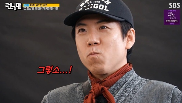런닝맨양세찬/사진=SBS캡처[스포츠투데이임시령기자]'런닝맨'양세찬이걸그룹여친과의열애설에대해직접입을열었다.19일방송된SBS예능프로그램'런닝맨'은2명의스파이를찾아내는추리게임으로꾸며진가운데뮤지컬'스윙데이즈_암호명A'유준상,신성록,박은태가게스트로출연했다.이날멤버들은'그렇소'로대답하지못하면감점되는게임을이어갔다.지석진은유재석에게"나은이가"라고운을뗐다.심상치않음을감지한유재석은"삼촌이할말이있고안할말이있다"고경고해웃음을안겼다.하지만지석진이"아빠를쏙빼다닮았으면좋겠냐.얼굴이.입튀어나온거"라고강조해유재석을당황하게했다.유재석은결국대답을하지못하고"아니.가족을.아들딸을데리고오냐"라고해폭소를안겼다.이후유재석은양세찬에게"걸그룹여자친구를사귄적이있냐"고물었다.양세찬은당황하면서도"그렇다"고답해눈길을끌었다.박은태도공격에들어갔다.그가"여자친구있냐.그분과결혼할거냐"고묻자양세찬은"한번만물어봐야한다"고급마무리해폭소를더했다.[스포츠투데이임시령기자[email protected]]Copyright©스포츠투데이.무단전재및재배포금지.