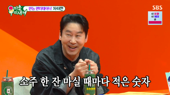 방송시청후작성된리뷰기사입니다.[OSEN=박하영기자]‘미운우리새끼’신동엽이자신을똑닮은딸의주량을공개했다.26일방송된SBS예능‘미운우리새끼’(이하‘미우새’)에서는스페셜MC로배우차태현이등장했다.이날차태현은최근스무살이됐다는큰아들근황을전했다.그는“수찬이가예전에는대화가별로없었는데확실히스무살되니까조금편해지긴했다”라며“아들이스무살되면아들이랑술먹을생각을했는데가끔한두잔먹는데확실히얘기도많이한다”라고말했다.이때어머니들이“고3때까지무서워하지않았냐”고묻자차태현은“이제는그의이름을당당하게부를수있다”고답했다.공감한신동엽은“저도우리딸이대학교가고나서편해졌다.술을꽤마시는것같더라”라며“한번은얼마나마셨냐고물었는데휴대폰에23이적혀있더라.소주1잔마실때마다적은거더라”라고남다른딸주량을공개해눈길을끌었다.차태현이“소주23잔이면많은거아니냐”고놀라자신동엽은“다챙겨주고택시태워보내고왔다고하더라”라고말했다.이에서장훈은“아빠DNA는어쩔수없다”고감탄했다./mint1023/@osen.co.kr[사진]‘미운우리새끼’방송화면캡처Copyright©OSEN.무단전재및재배포금지.
