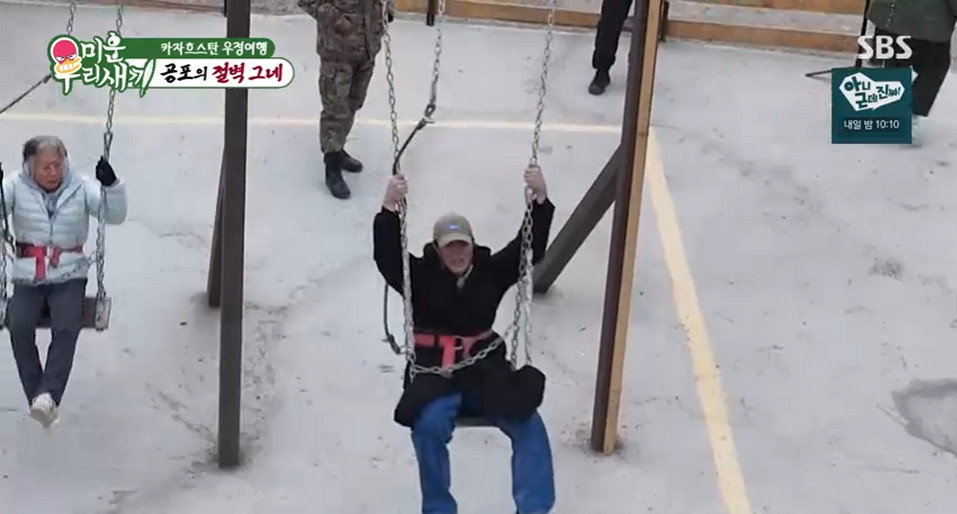 방송시청후작성된리뷰기사입니다.[OSEN=박근희기자]'미운우리새끼’카자흐스탄으로우정여행을떠난네명의배우들이아찔한절벽그네위에서혼비백산했다.8일전파를탄SBS'미운우리새끼'(이하'미우새')에서는카자흐스탄으로떠난10년지기찐친이성민,김종수,김성균,배정남의파란만장한여행기2탄이공개됐다.김종수,김성균,배정남,이성민은카자흐스탄의명소인공포의절벽그네에도전했다.자발적으로나선김종수에이어가위바위보에서패배한김성균이그네에탑승하게됐다.잔뜩겁에질린김성균은“엉덩이빠진다고”라며소리를질러현장을폭소케했다.그네가허공을가르자김성균의수난은정점에달했다.실제로엉덩이가빠져공포를느낀그는두눈을질끈감은채“스탑스탑스탑플리즈”라고간절하게외쳤다.스튜디오에서이영상을지켜보던서장훈조차“진짜무서울것같아”라며김성균의공포에깊이공감하는모습을보였다.그네에서가까스로내려온김성균은창백해진얼굴로“엉덩이가빠졌다니까요”라며억울함(?)을호소해다시한번웃음을안겼다.다음타깃은멀찌감치도망가있던배정남이었다.김종수와김성균은배정남의양쪽팔짱을끼고연행하듯그네로이끌었다.위기를감지한배정남은옆에있던이성민에게구원의손길을뻗었으나,이성민은“일단타봐”라며차분하게거절했다.하지만결국배정남의끈질긴설득에이성민까지동반탑승하며두사람의'비명잔치'가시작됐다.절벽끝으로내던져진두사람은엄청난공포에정신을차리지못했다.평소묵직한카리스마를자랑하던이성민은“토할것같아”라고솔직한심경을고백했고,배정남역시혼이나간표정으로소리를질러모두를배꼽잡게만들었다./[email protected][사진]‘미운우리새끼'방송화면캡쳐Copyright©OSEN.무단전재및재배포금지.