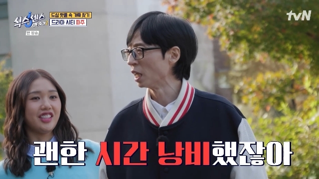 tvN‘식스센스:시티투어2’캡처tvN‘식스센스:시티투어2’캡처[뉴스엔서유나기자]방송인유재석이잘못된정보를퍼뜨린방송인지석진을향해정색했다.12월11일방송된tvN예능'식스센스:시티투어2'7회에서는뭉툭즈유재석,지석진,고경표,미미가파주의가짜핫플레이스를찾아나섰다.이날지석진은드라마'육룡이나르샤'가언급되자"'육룡이나르샤'가태연노래잖나.주제곡아니냐"고말꺼냈다.태연이드라마의OST를부르지않았냐는것.이에미미가"그거는'베토벤바이러스'아니냐"고반박하자유재석은AI를등판시켰다.유재석은휴대폰에"'육룡이나르샤'태연이불렀니?"라고물었고'태연이OST에참여하지않았다'는답변을받았다.깔끔하게논쟁을종료시킨유재석은지석진을향해"형때문에괜한시간낭비했잖아"라고장난스레정색해웃음을자아냈다.지석진은"잘못된정보가많다"며멋쩍어했다.뉴스엔서유나stranger77@기사제보및보도자료[email protected]ⓒ뉴스엔.무단전재&재배포금지Copyright©뉴스엔.무단전재및재배포금지.