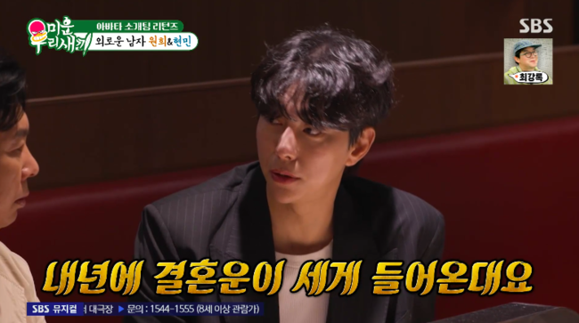 방송시청후작성된리뷰기사입니다.[OSEN=박하영기자]‘미운우리새끼’윤현민이내년결혼운이있다고밝혔다.26일방송된SBS예능‘미운우리새끼’(이하‘미우새’)에서는탁재훈과김희철이‘연애바보’임원희,윤현민을위해아바타소개팅에나서는모습이그려졌다.탁재훈은“현민이너는왜갑자기소개팅나왔냐”라고물었다.윤현민은“저는진짜소개팅을태어나서한번도해본적이없다.저는대학을안갔기때문에중,고등학교도남자학교고”라고토로했다.탁재훈은“왜우리한테어필하냐”고이해하지못했다.윤현민은“제가얼마전에사주를봤는데내년에결혼운이세게들어온다고하더라”라고밝혔다.스튜디오에서윤현민어머니는“제발”이라고했고,탁재훈은“아니현민이야사실허당이긴하지만그래도겉으로보면아무소리안하면허당인지모른다고한다.되도록이면말을하지마”라고조언을해웃음을안겼다.그러자윤현민어머니는과거윤현민의허당미가득했던영상이나오자“저방송나가고‘윤현민어머니세요?’하는데아니라고했다”라고털어놨다./mint1023/@osen.co.kr[사진]‘미운우리새끼’방송화면캡처Copyright©OSEN.무단전재및재배포금지.