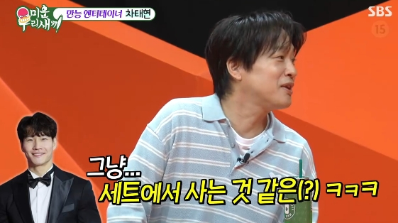 [스타뉴스|김정주기자]/사진=SBS예능프로그램'미운우리새끼'배우차태현이절친김종국의2세계획을전했다.26일방송된SBS예능프로그램'미운우리새끼'에는차태현이스페셜MC로출연해남다른예능감을선보였다.이날차태현은얼마전결혼한김종국을언급하며"일단결혼식에서만봤고그냥세트에서사는것같다.신혼집에가본적도없고,제가그집에가기전까지는믿을수가없다.전국민이꿈을꾼것같다"라고밝혀웃음을안겼다./사진=SBS예능프로그램'미운우리새끼'그는"집들이가전혀없어서믿지않는다"면서도"최근핫한소식은2세계획을준비하고있다는얘기를들었다"라고전해현장을술렁이게했다.그러면서"얘기는들었지만믿고있지는않다"라고말해모두를폭소케했다.김정주기자[email protected]©스타뉴스&starnewskorea.com,무단전재및재배포금지